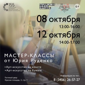 8 и 12 октября Юрий Руденко проводит творческие занятия по живописи. В процессе занятия художник научит основным приемам создания картины на холсте масляными и акриловыми красками или на бумаге акварелью и гуашью.#ТМПО...