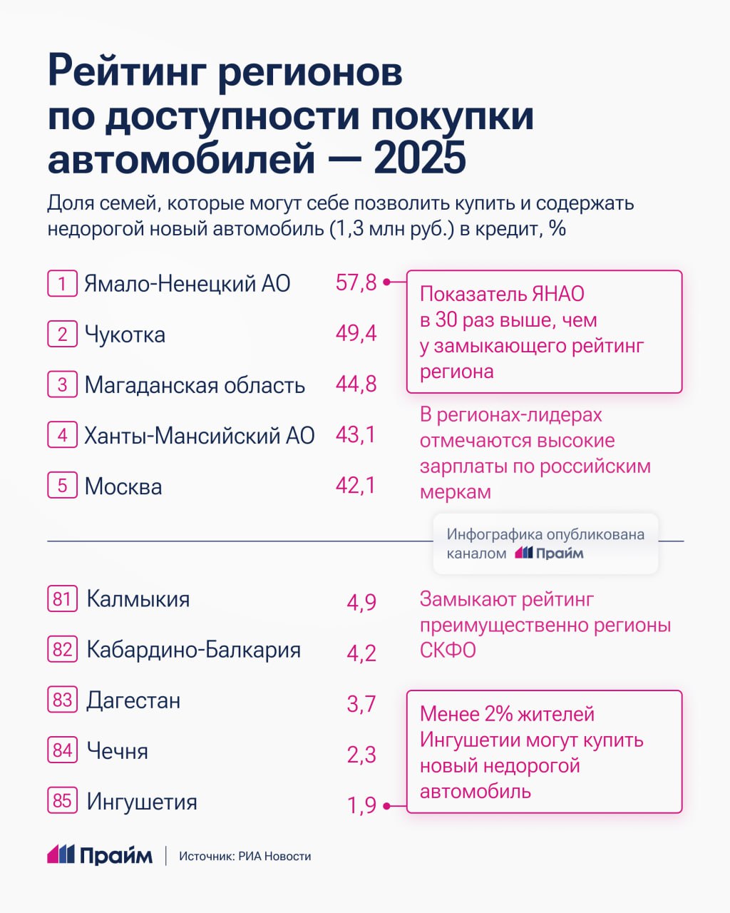 ЯНАО, Чукотка и Магаданская область стали лидерами по доступности покупки авто среди регионов.