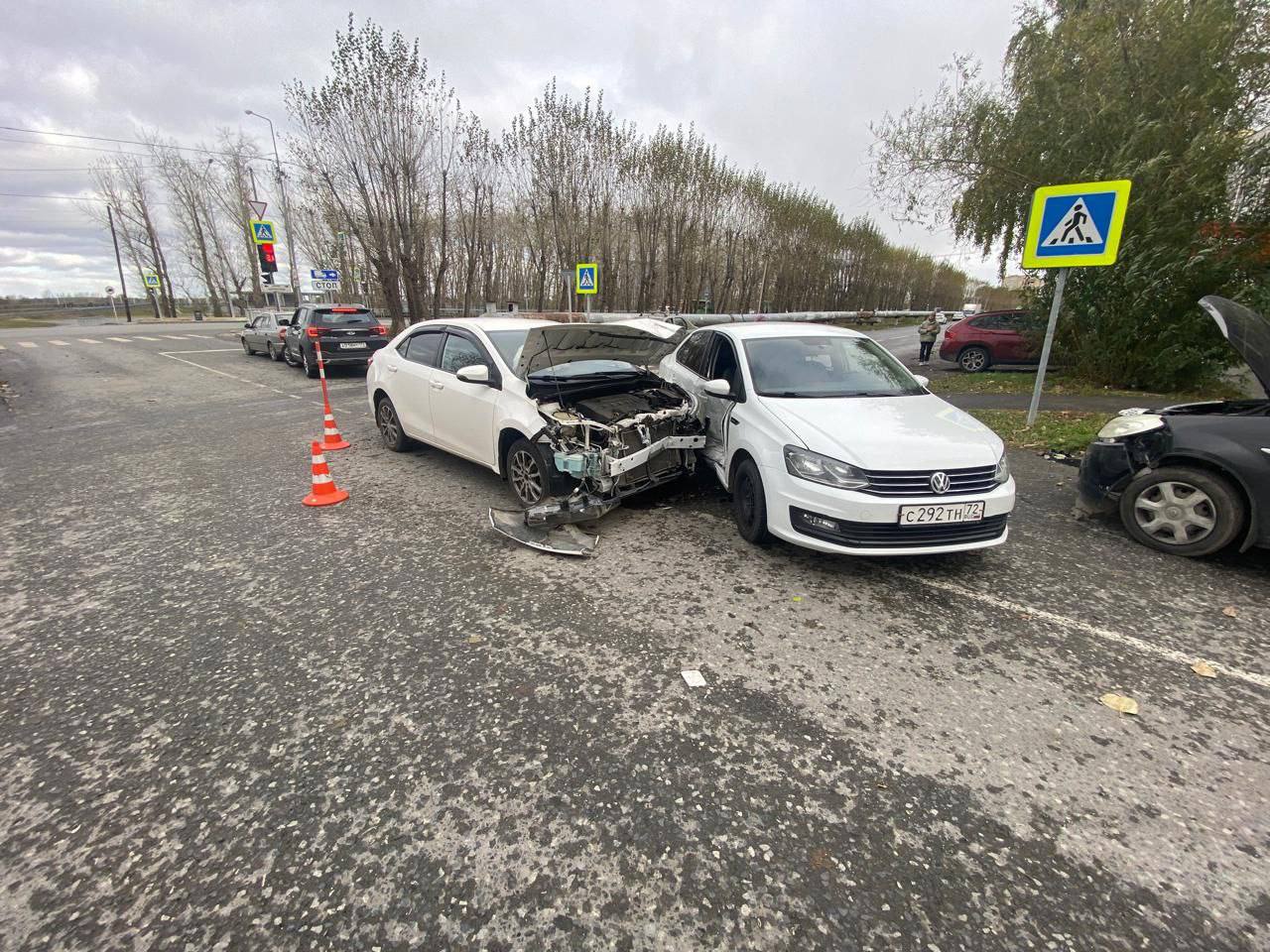 «Тойота» и "Фольксваген" столкнулись сегодня на ул. Шербакова, 104 в Тюмени.