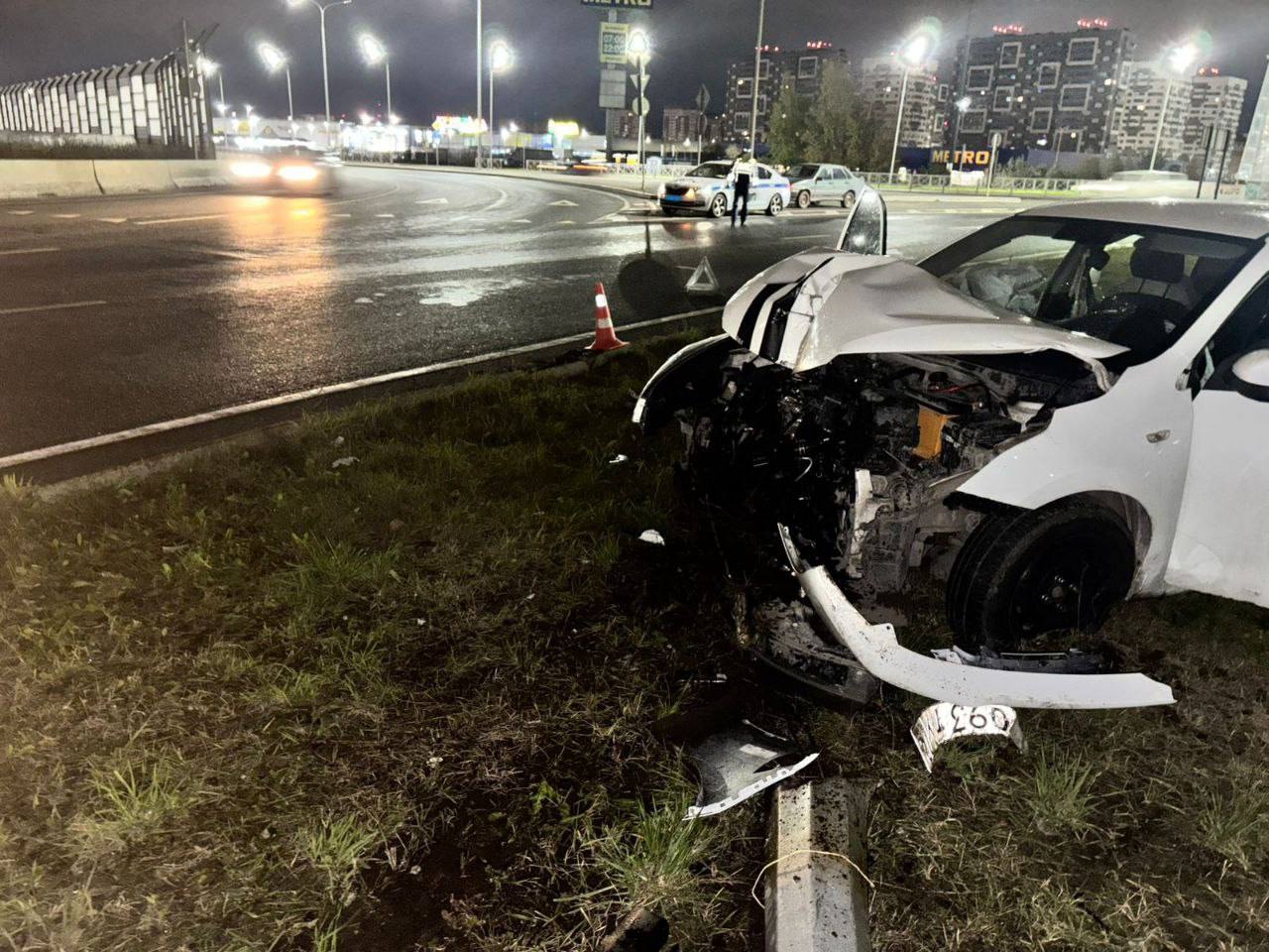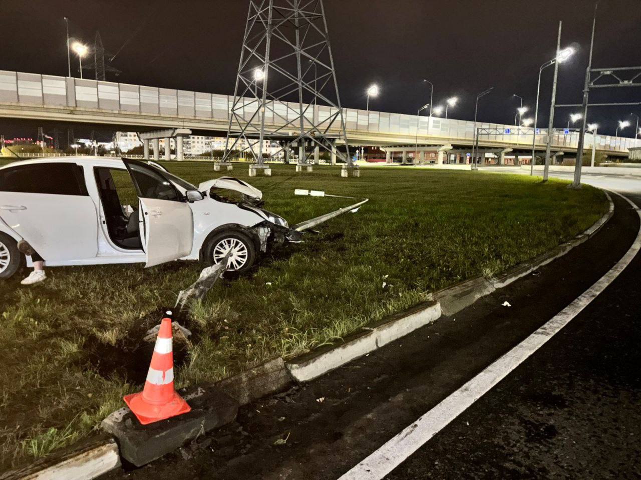 Ночью автомобиль «Киа» въехал в фонарный столб на ул. Мельникайте, 150 в Тюмени.