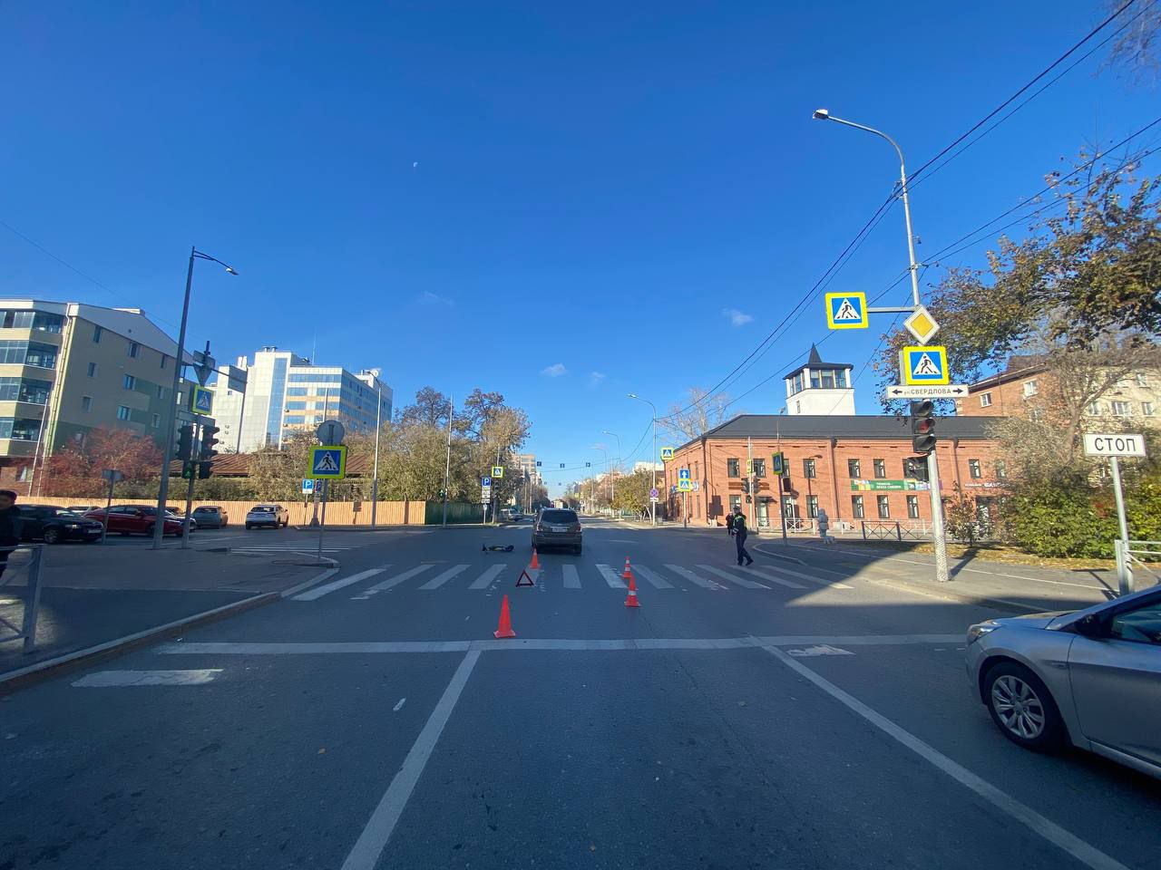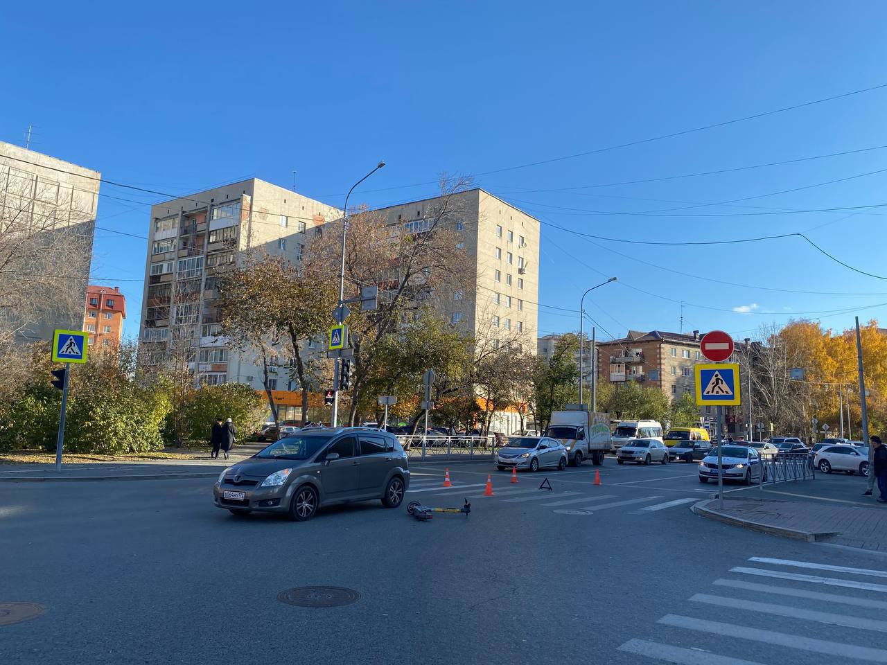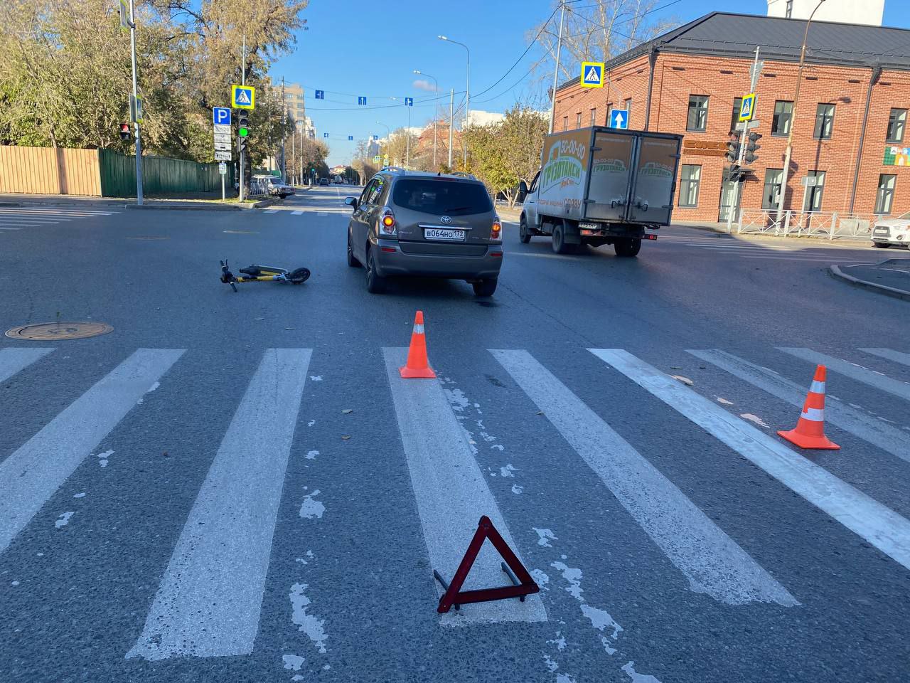 Электросамокат и "Тойота" столкнулись вчера в Тюмени на ул.Свердлова, 5. Предварительно, 17-летняя тюменка на прокатном элекстросамокате ехала по "зебре" не спешившись, на зеленый сигнал светофора.