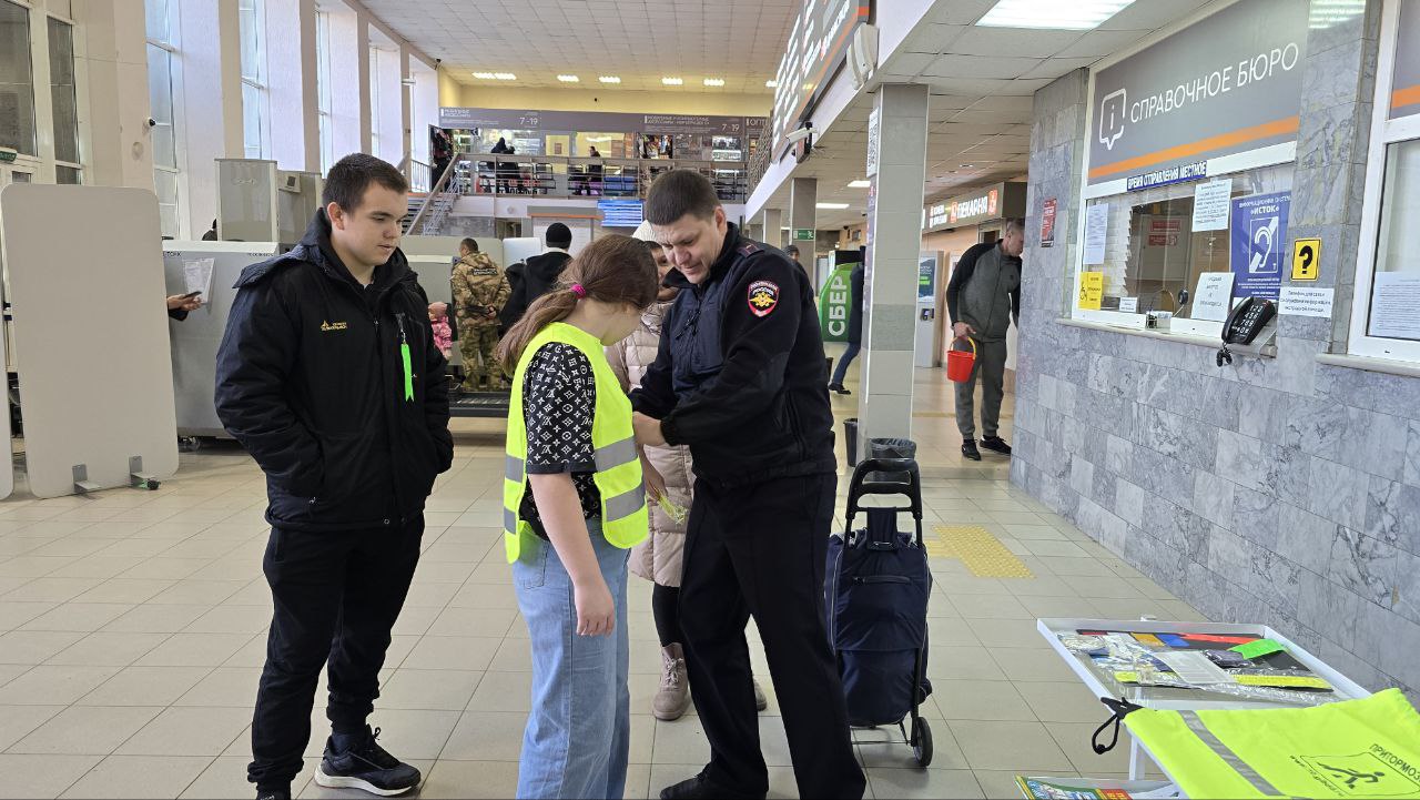 В рамках Единого дня дорожной безопасности сотрудники Госавтоинспекции провели экспресс-уроки по безопасности пешеходов в темное время суток на тюменском автовокзале для пассажиров, прибывших в Тюмень и отправляющихся в поездки.