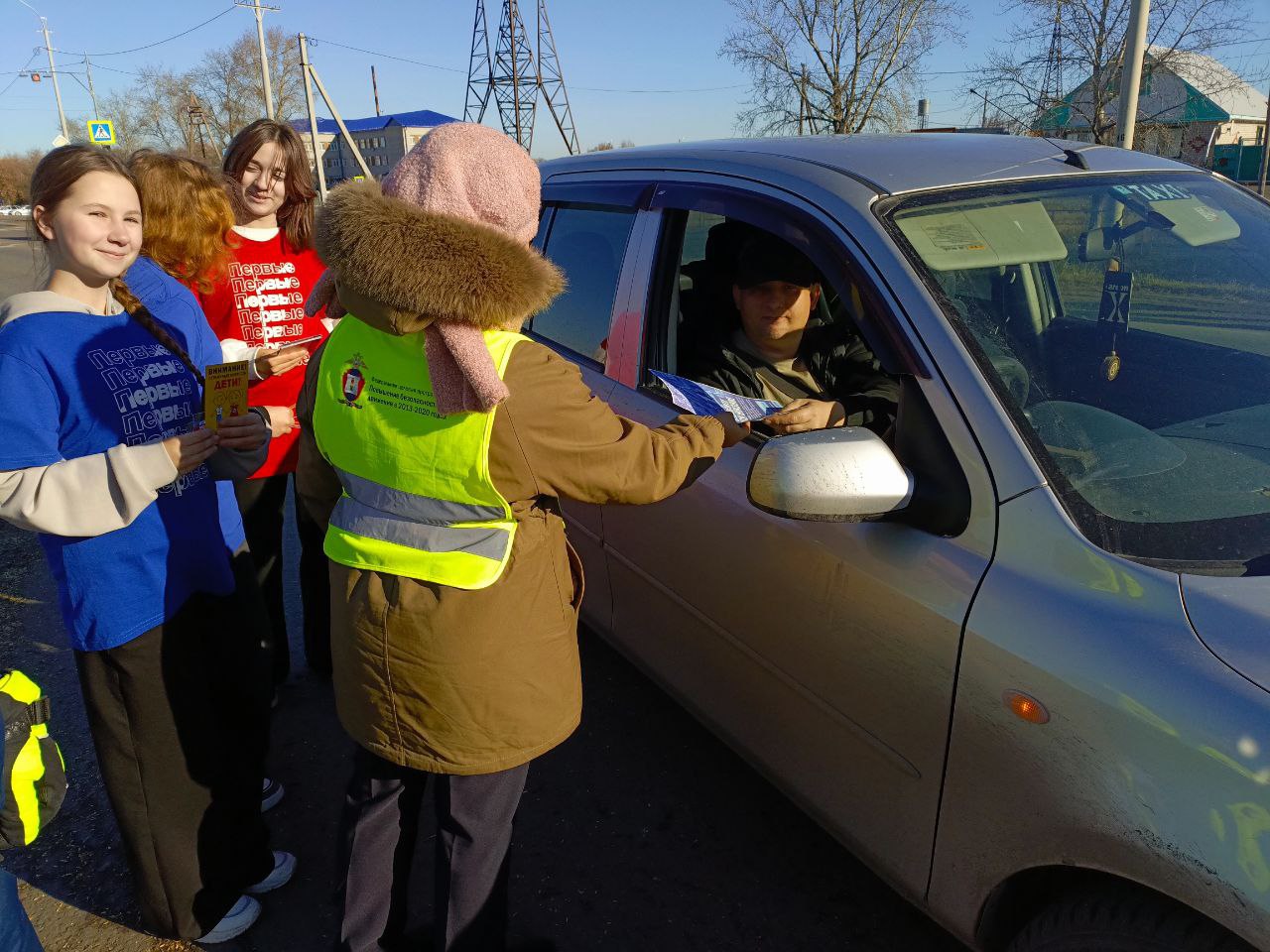 На автодороге Ишим-Казанское, в п. Новоселезнево представители Движения Первых вместе с автоинспекторами, призвали сельских водителей сбавлять скорость, вблизи образовательного учреждения.