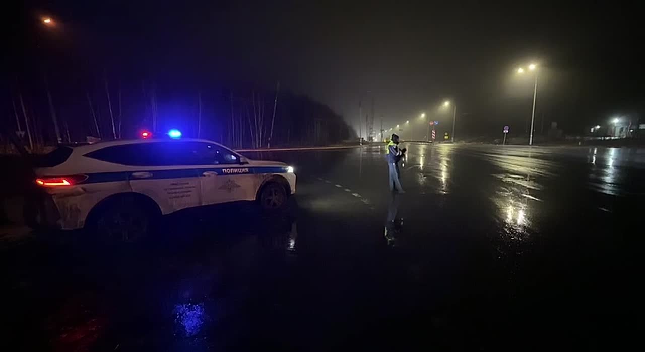 Дождь, сильный боковой ветер, туман на федеральной автодороге Тюмень-Ханты-Мансийск под Тобольском.