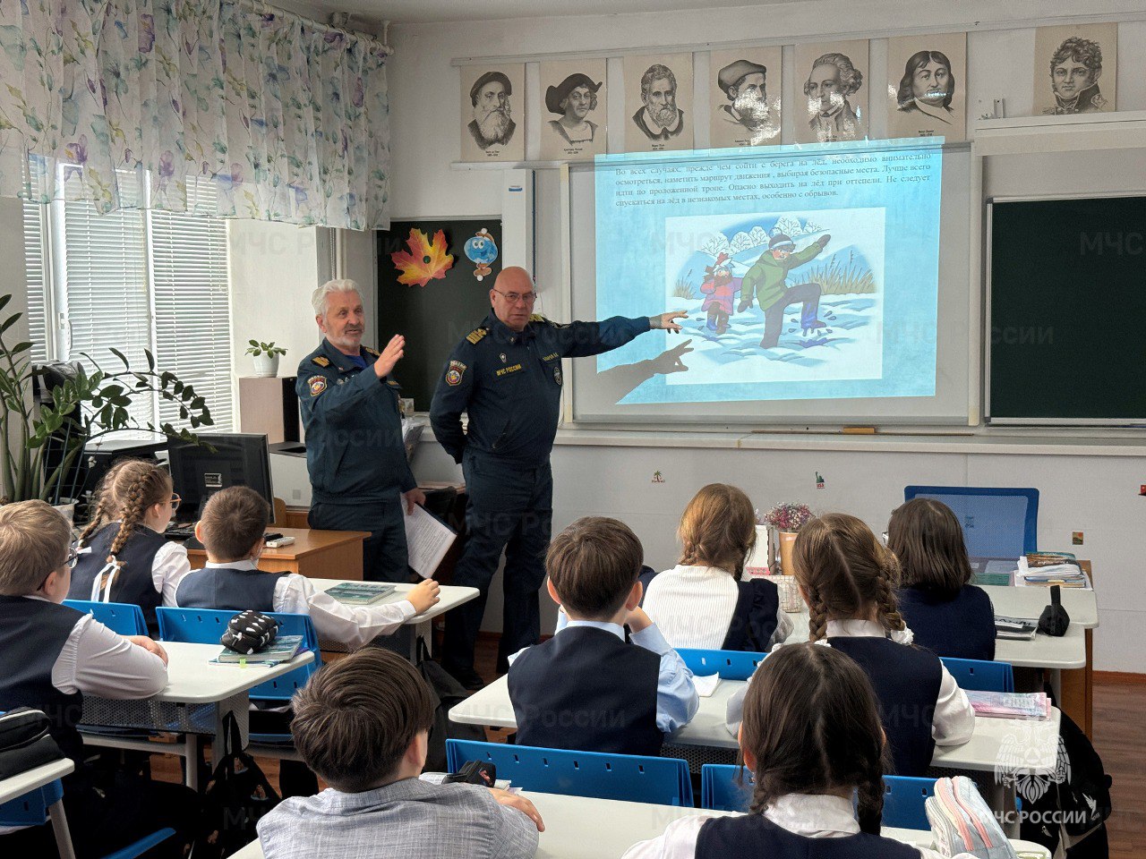 Представители ведомства провели с детьми беседу по правилам безопасности на льду, показали тематическую презентацию, повторили номер вызова экстренных служб 112. Важную информацию о поведении вблизи водоемов в осенне-зимний период получили 75 пятиклассников. @MCHSTYUMEN72