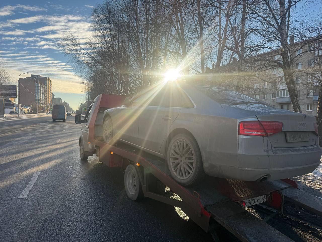 Автомобиль «Ауди» сегодня задержан сотрудниками Госавтоинспекции и арестован судебными приставами за долги по оплате штрафов за нарушения ПДД.
