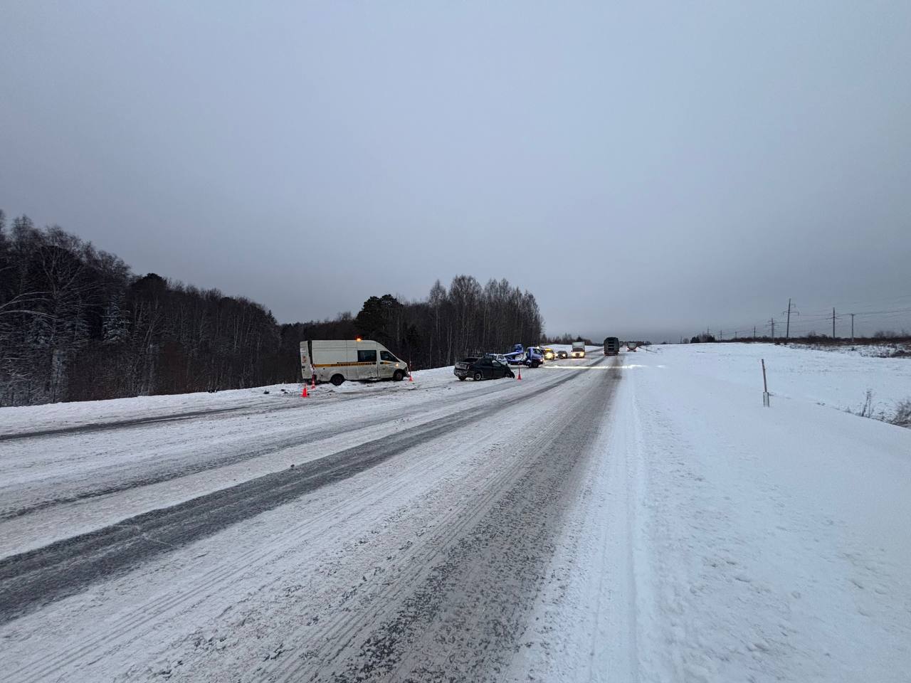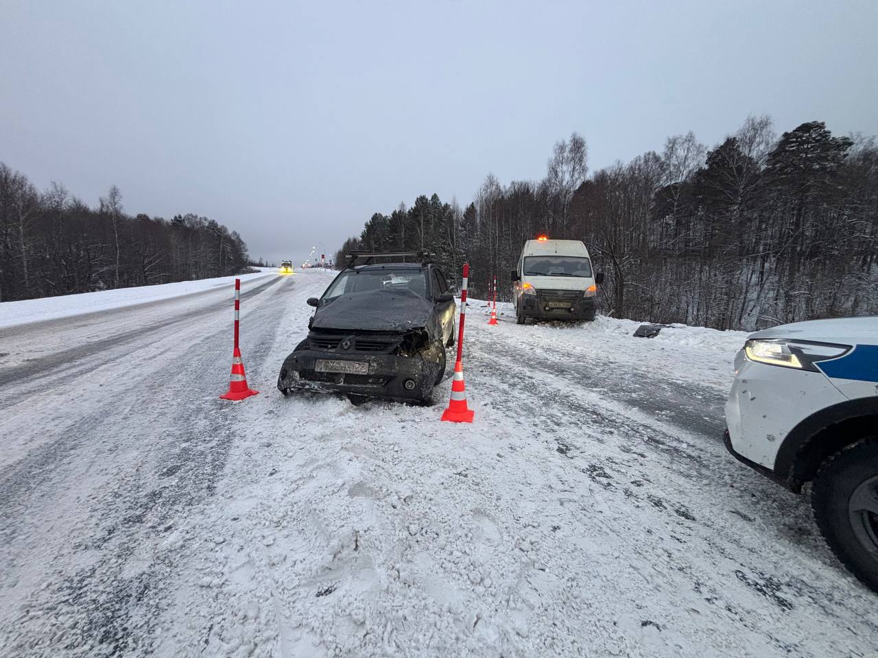 ДТП на 247-м километре федеральной автодороги Тюмень-Ханты-Мансийск. Здесь «Рено Логан» въехал в стоящий автофургон «Газель» дорожной службы.