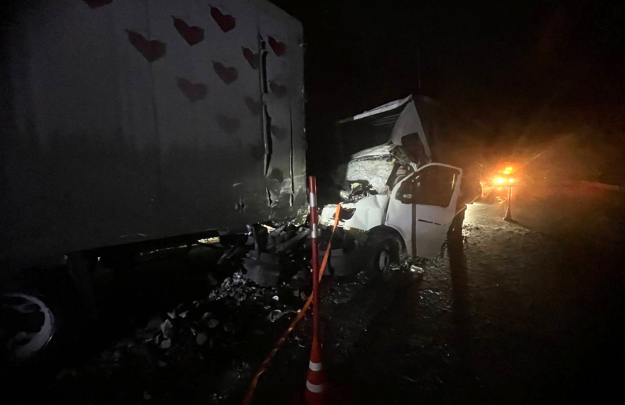 Сегодня ночью автомобиль "ГАЗ 2834NA" наехал на стоящий большегруз "Мерседес Бенц" с полуприцепом "Шмитц", который совершил вынужденную остановку из-за поломки.