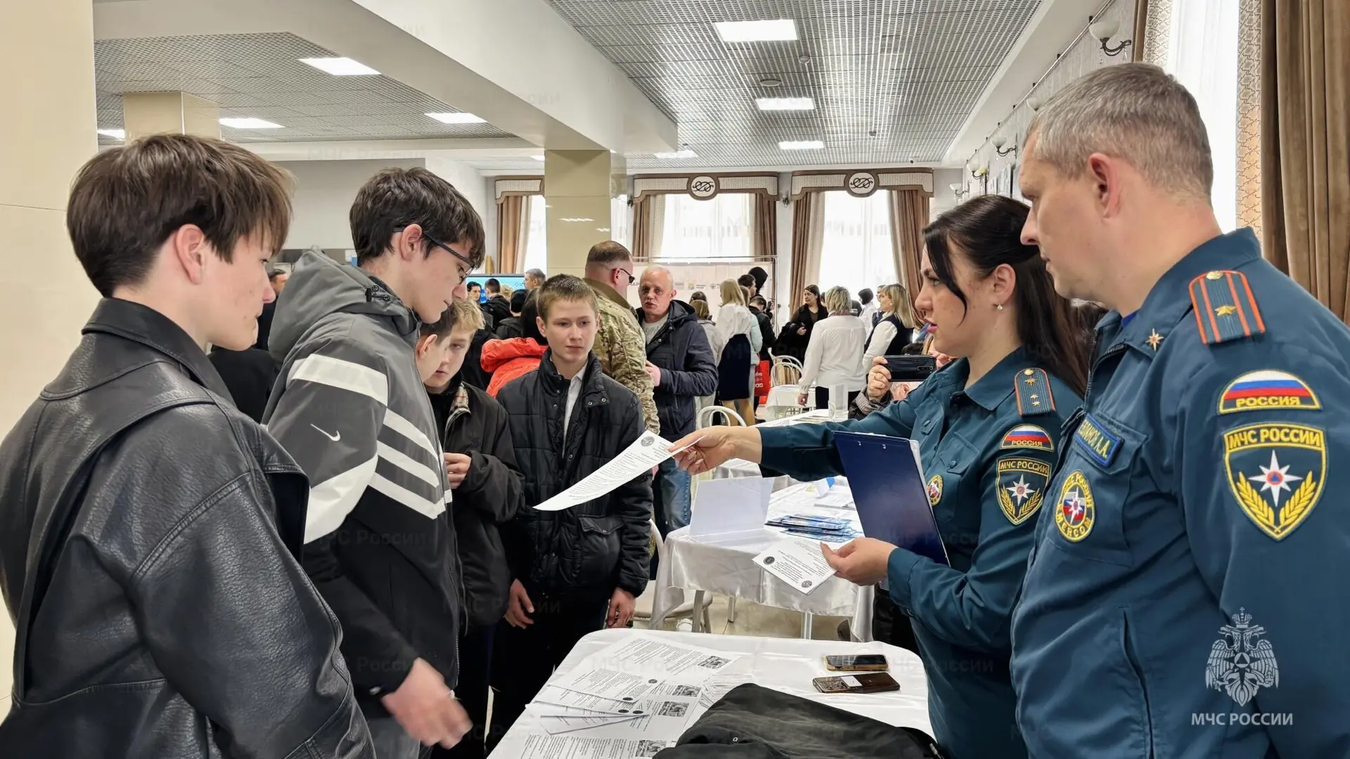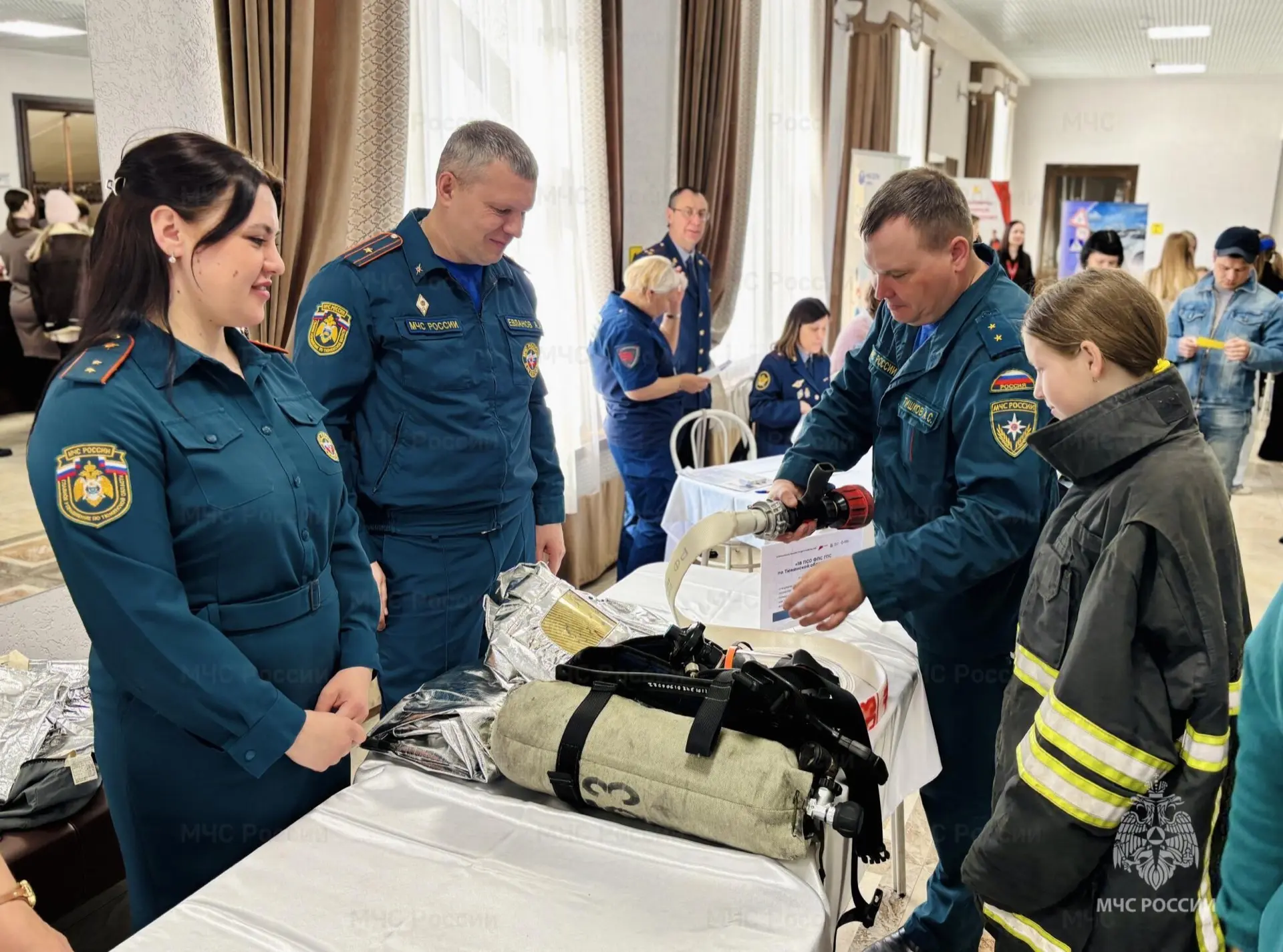 Сотрудники МЧС России рассказали соискателям работы об имеющихся в ведомстве вакансиях, требованиях к кандидатам для трудоустройства, социальных гарантиях и возможностях дальнейшего повышения квалификации, провели беседы с детьми о поступлении в ВУЗы МЧС России.