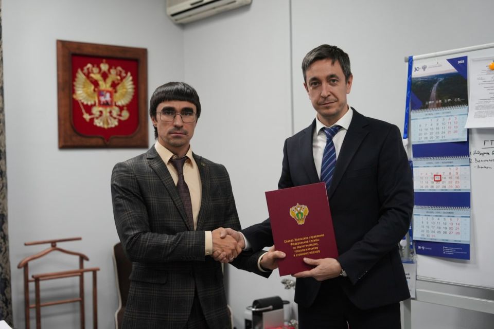 Заместитель руководителя Северо-Уральского управления Ростехнадзора Казанцев Д.П. передал заместителю главы Тюмени А.Д. Ильину паспорт обеспечения готовности города к отопительному периоду. Этот документ служит подтверждением готовности к работе...
