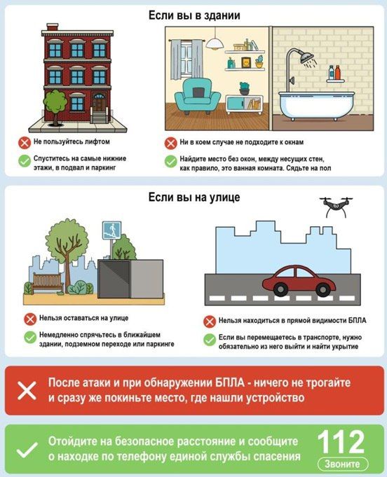 В случае визуального обнаружения в воздухе БПЛА необходимо:- оперативно сообщить в службу вызова экстренных оперативных служб по номеру "112" или в полицию по номеру "102" следующую информацию: свою фамилию, имя, отчество; место, время, количество и...