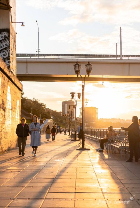 Посмотрите, как последние лучи солнца озаряют золотым светом все вокруг себя! В такую погоду хочется лишь мирно прогуливаться вдоль реки и никуда не спешить.А вы любите такие осенние прогулки по набережной? — да, это хорошее завершение дня!— нет...