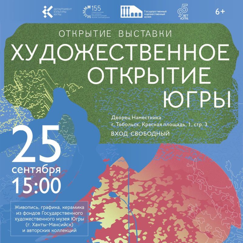 В Тобольске во Дворце Наместника (Красная площадь,1, стр.3) 25 сентября состоится открытие выставки "Художественное открытие Югры". Начало в 15:00. Вход на открытие свободный. Возрастное ограничение 6+.Проект организован Государственным художественным...