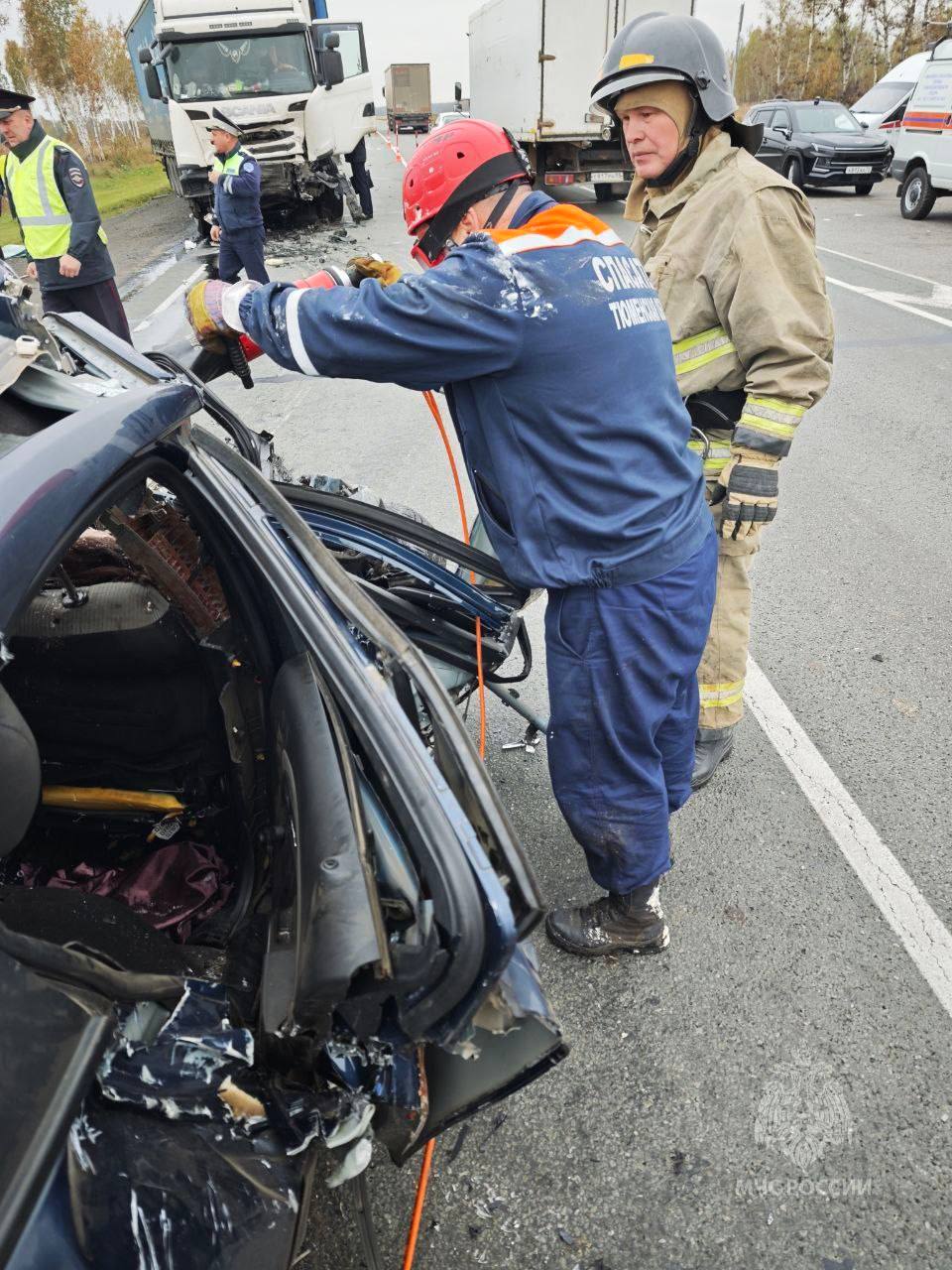 На трассе Тюмень - Омск погибли три человека - там столкнулись грузовик и легковушка. Сотрудники экстренных служб проводят работы по деблокированию тел погибших и смыва топлива с проезжей части.