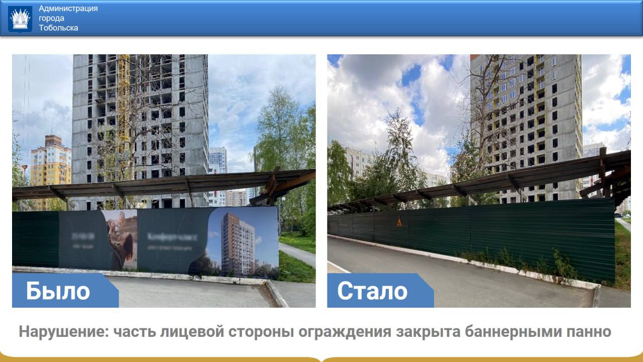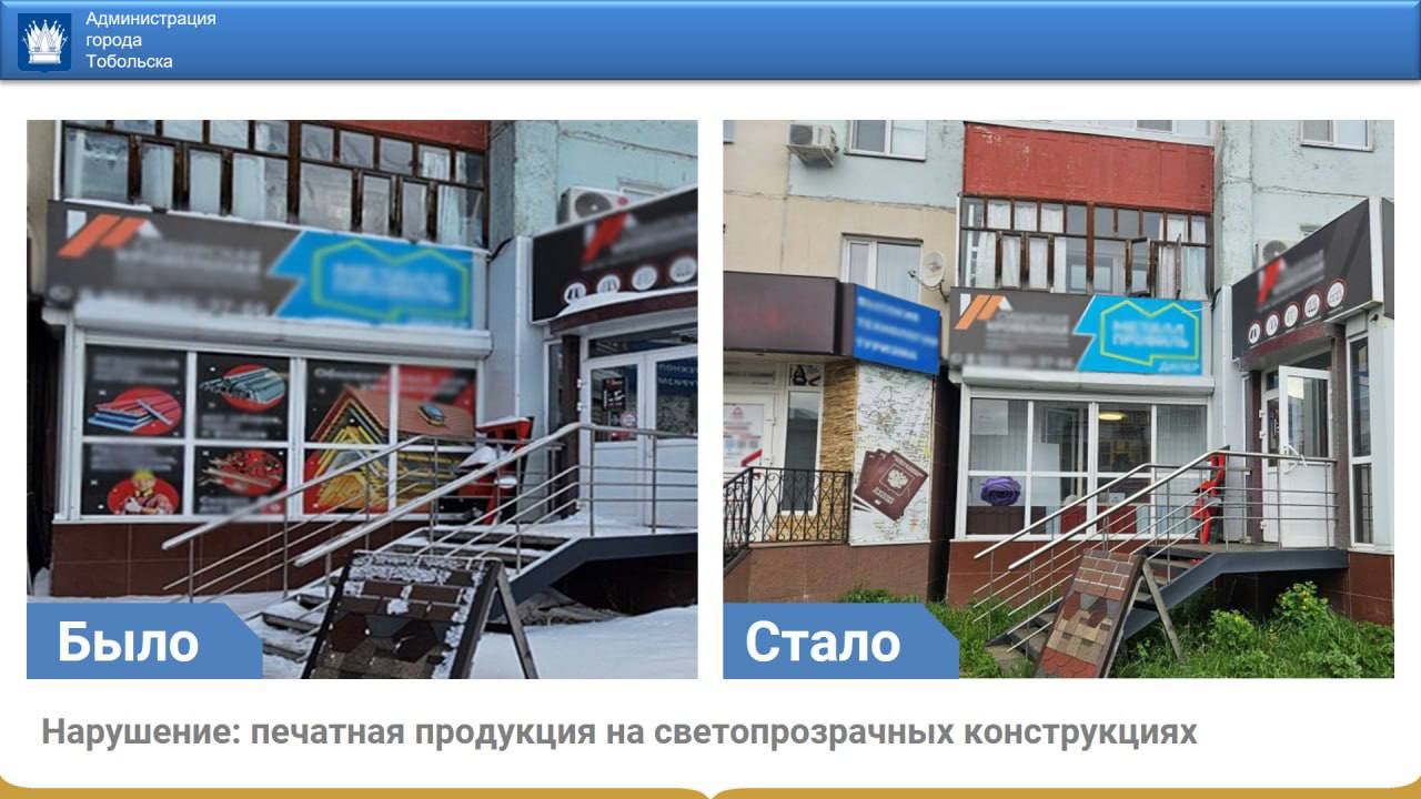 Мы стремимся к тому, чтобы каждый уголок Тобольска радовал глаз! Администрация города ведет планомерную работу по контролю за обликом города, чтобы фасады домов, рекламные вывески и даже временные объекты выглядели аккуратно и радовали жителей и гостей Тобольска.