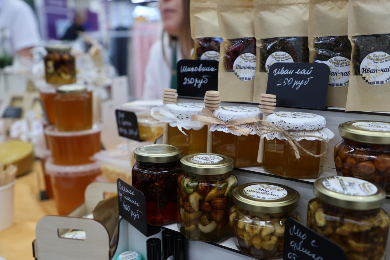 Участники из Ярковского района представили в Тюмени сыры, текстильные изделия с вышивкой и Иван-чай со смородиной, чабрецом, шиповником, облепихой, лепестками кедровой шишки. Его производят в деревне Никольской на небольшом семейном предприятии и продают в Екатеринбург, а также через маркетплейсы в другие города России.