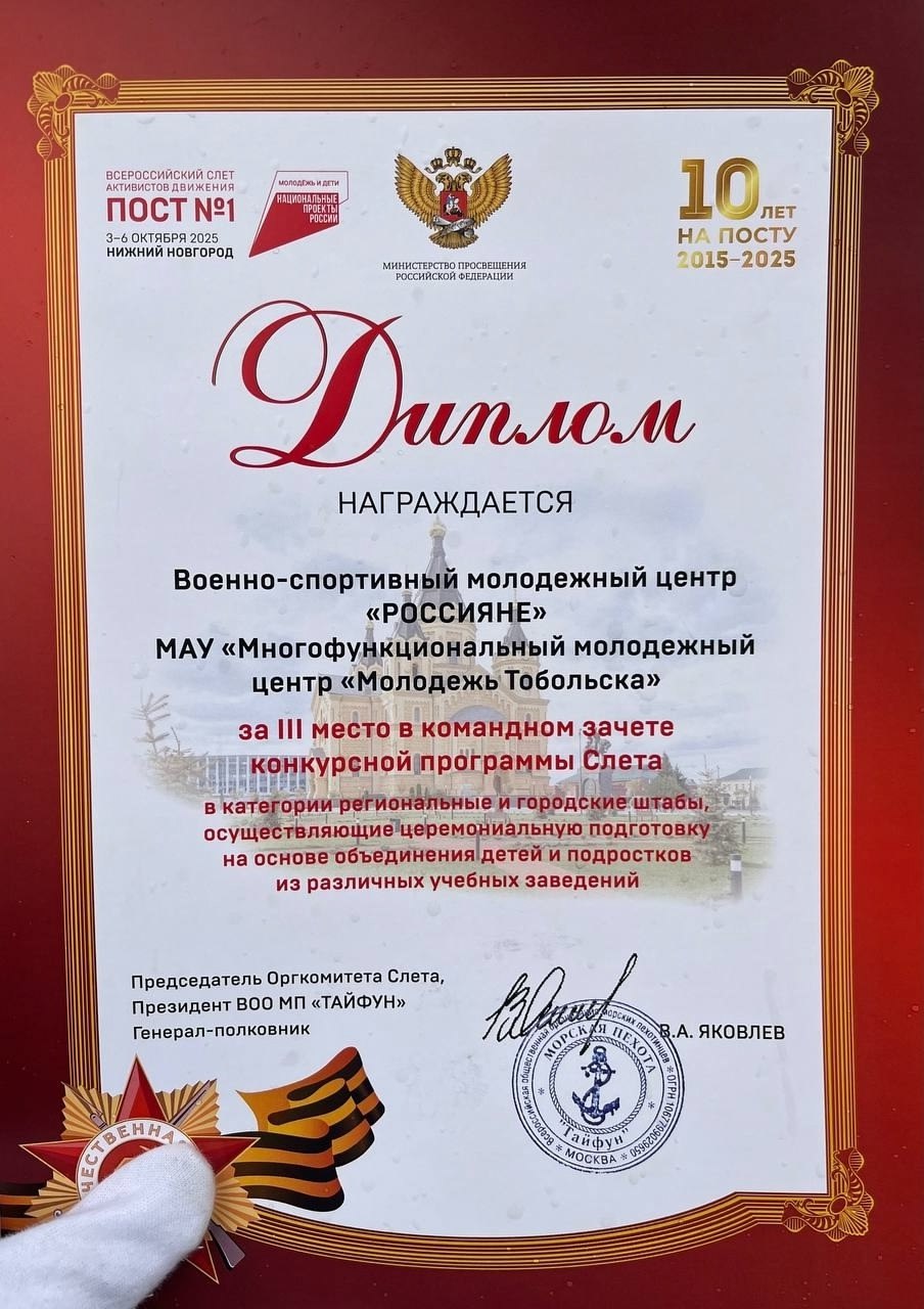 По итогам всех конкурсных номинаций Слета молодежный почетный караул города Тобольска занял место в общем зачете!
