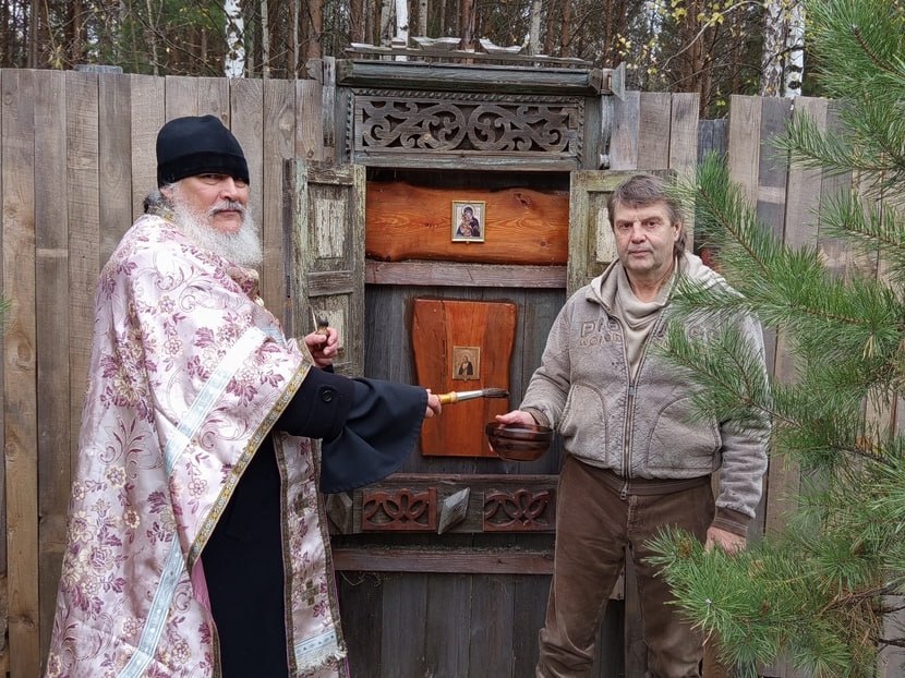 Отец Владимир, настоятель храма Рождества Пресвятой Богородицы, провёл освящение молельного дома, построенного собственноручно известным тюменским режиссёром Константином Одеговым.