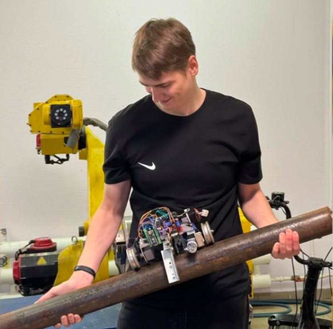 Магистрант ТИУ Иван Медведев стал победителем конкурса «Студенческий СТАРТАП» и получил грант в 1 млн рублей. Его робот предназначен для автоматизированной проверки трубопроводов и может самостоятельно двигаться по трубам, обнаруживая и отмечая дефекты.