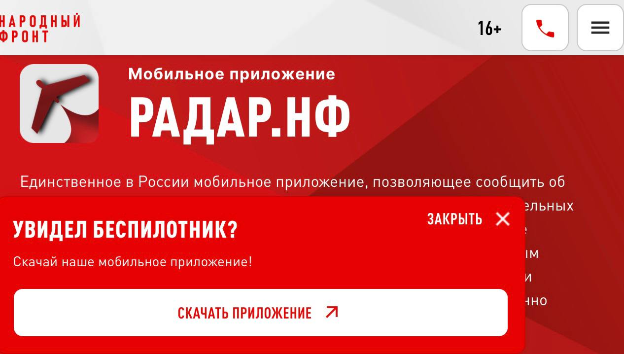 Приложение "Радар.НФ" разработали Народный фронт и Минобороны РФ. Его уже скачали более 1.5 миллионов человек.