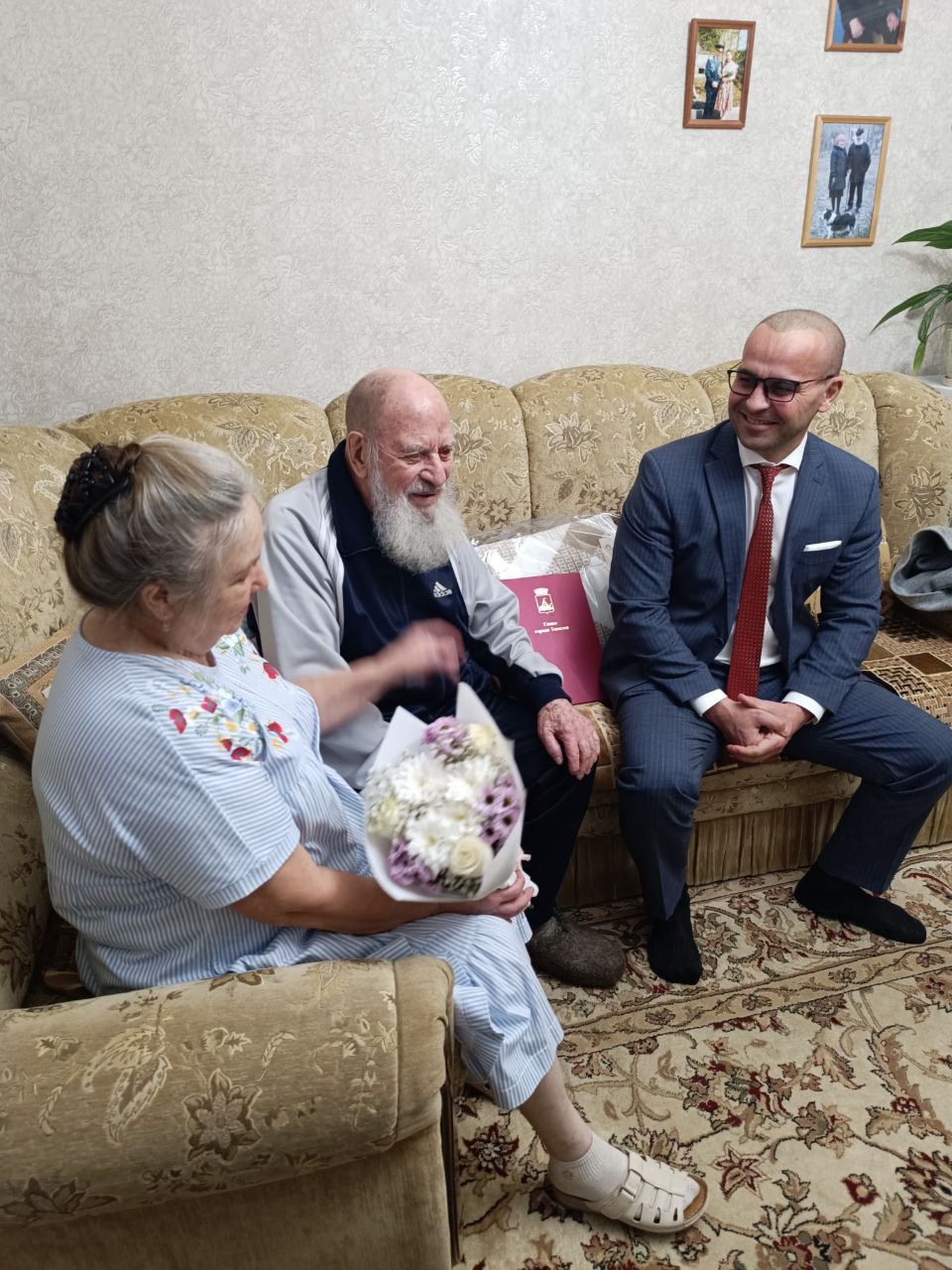 Сегодня руководитель Управы Калининского административного округа Олег Савчук посетил Михаила Фёдоровича Костюрина, ветерана Великой Отечественной войны и почетного гражданина города, чтобы лично поздравить его с 102-летним юбилеем.