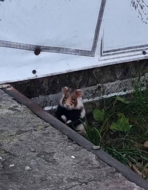 Иду с работы, задумалась, замечаю краем глаза, несётся с визгом из кустов что-то по Лесопарковой 17, у «Абсолюта» со стороны двора. Я тоже взвизгнула, а это два хомяка, крупные такие. Думаю, выкинули чтоли. Встал один на задние лапы и смотрит. Сфоткала, загуглила, пишут дикий хомяк Карабыш. Похоже стройка выгнала из дома. Осторожно там ходите, если верить интернету, могут укусить и передать заразу.