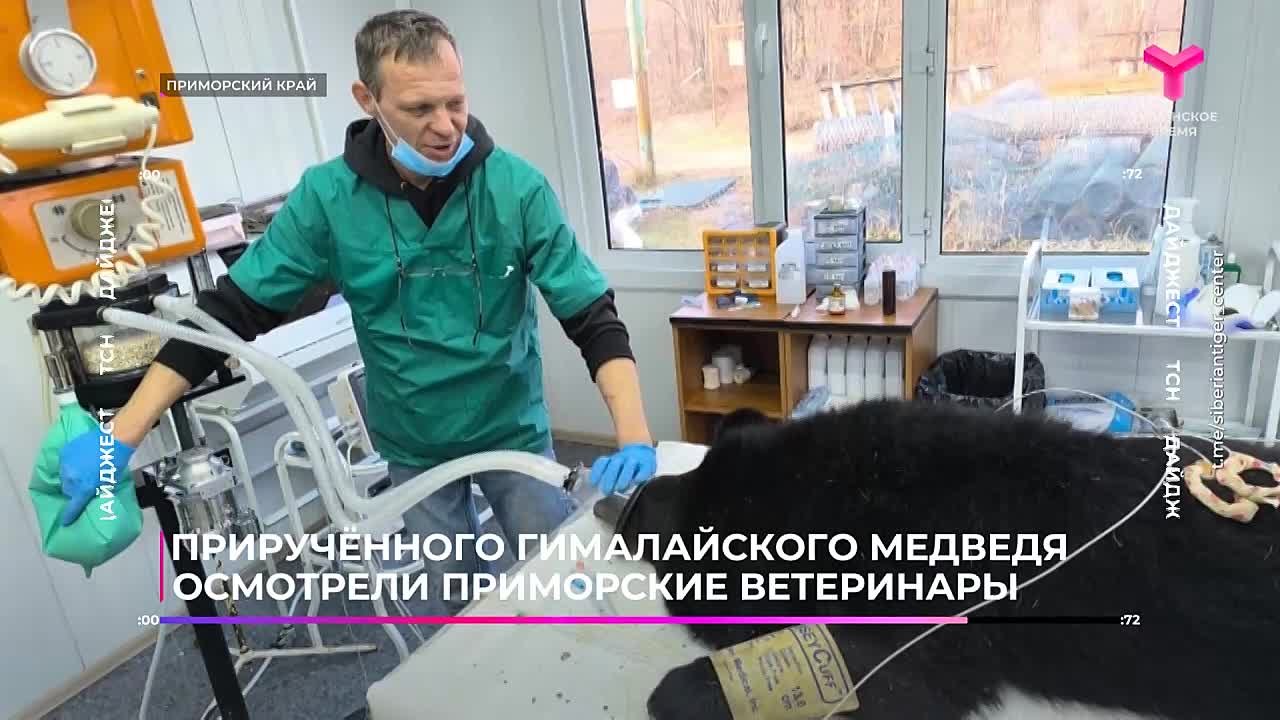 Полуторагодовалого гималайского медведя, который пришёл накануне в приморскую школу, сегодня осмотрели специалисты.