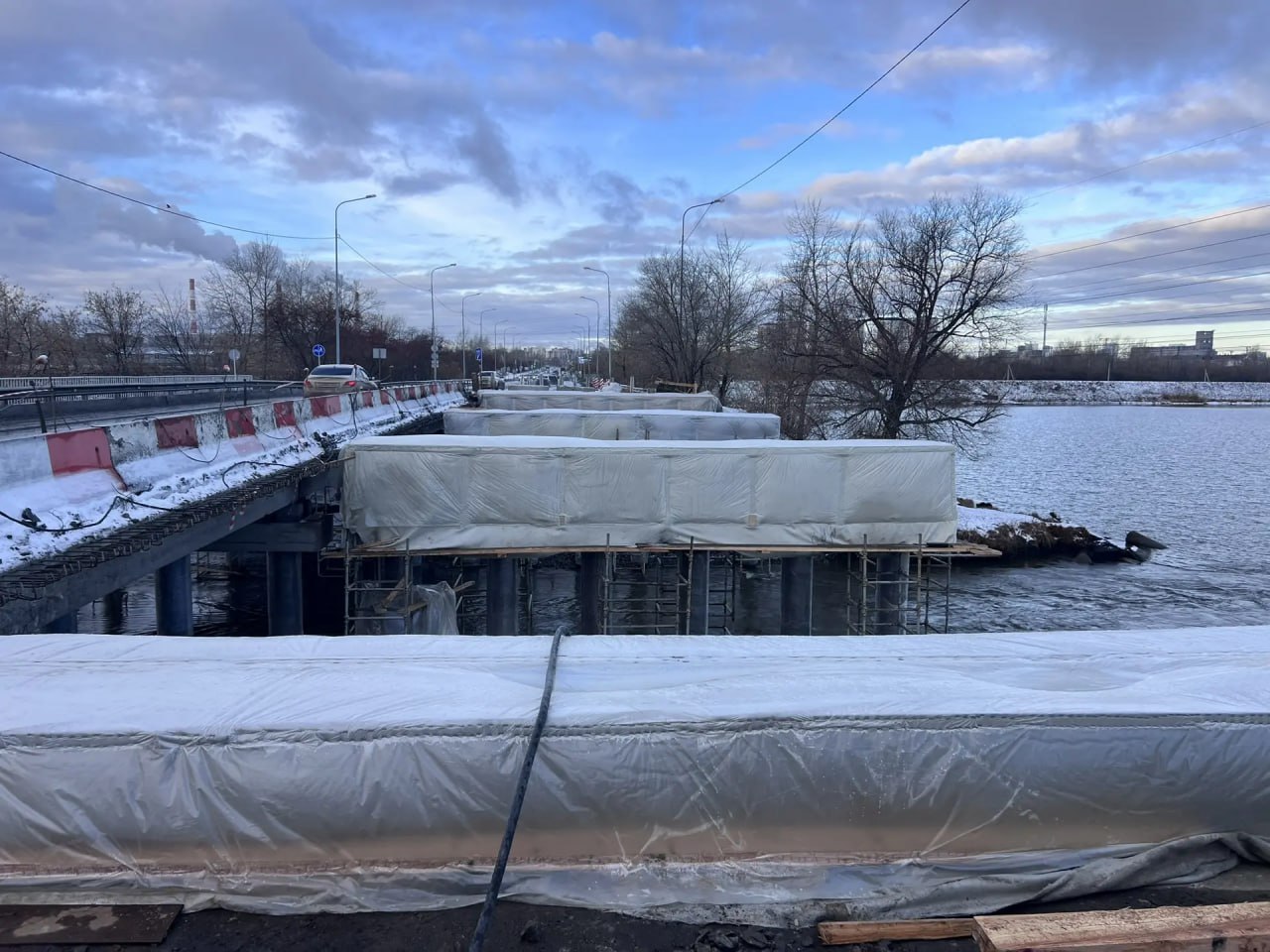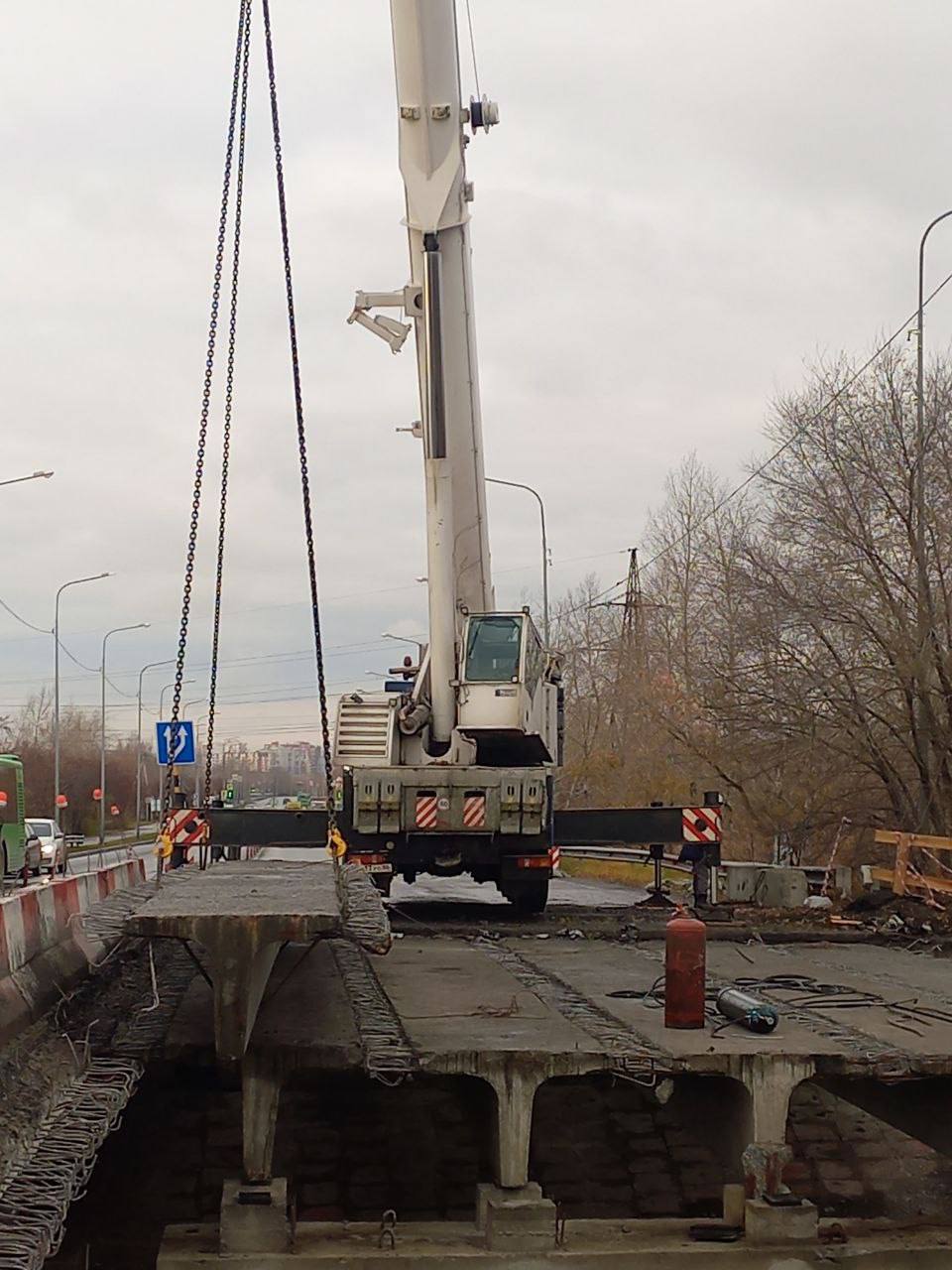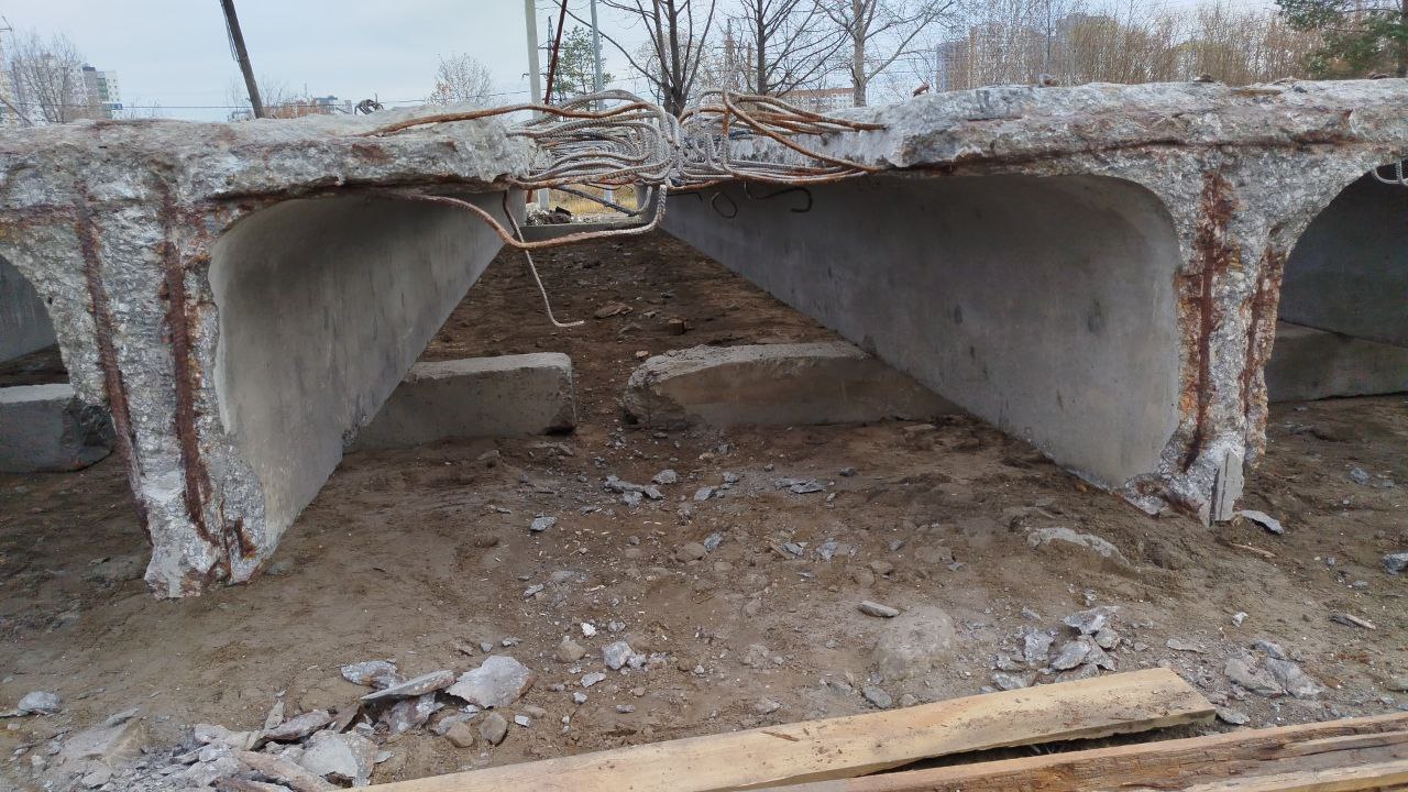 В ходе демонтажных работ специалисты выявили скрытые дефекты мостового сооружения. Было проведено дополнительное обследование балок, получено заключение о необходимости их замены. В настоящее время проводится процедура определения поставщика конструктивных элементов. С учётом нормативных сроков ориентировочная дата поставки изготовленных Т-образных балок — 25 декабря текущего года.