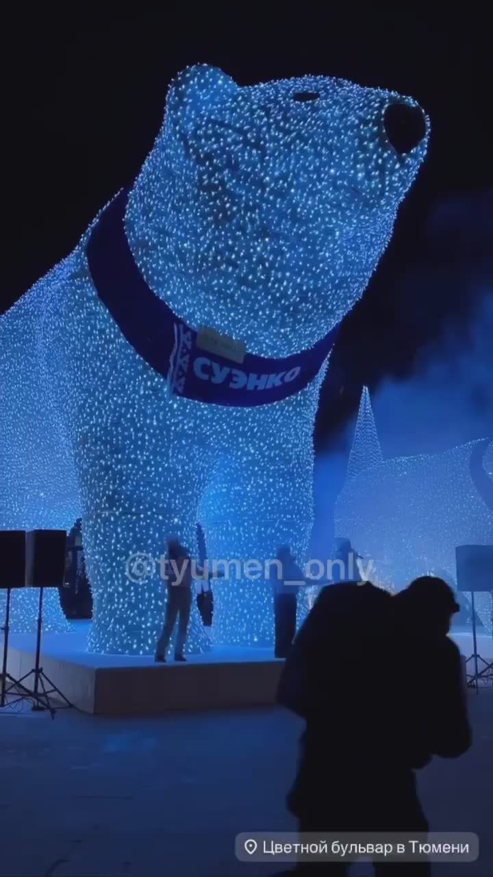 Накануне белые мишки у Цирка зажглись новогодними огоньками