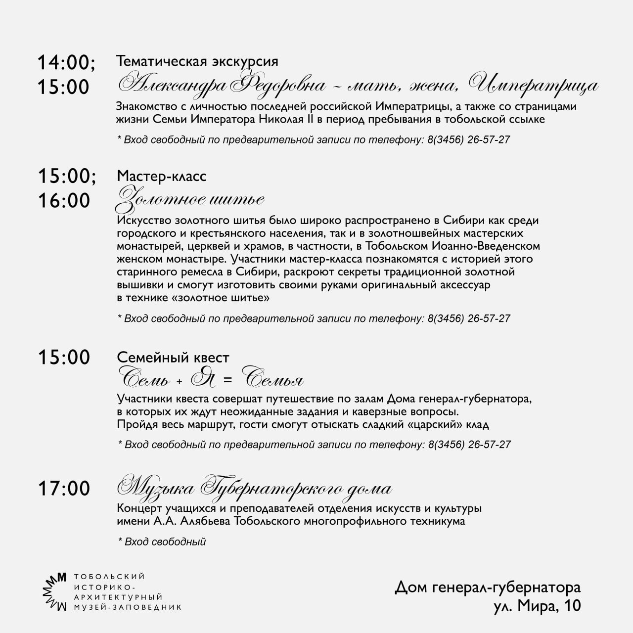 Ждем всех 30 ноября в Музее Семьи Императора Николая II по адресу: ул. Мира,10.