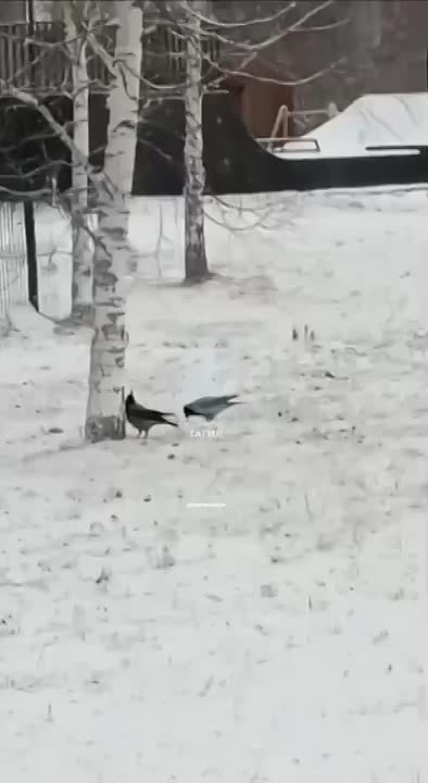 В Нижнем Тагиле ворона устроила покатушки на березовой ветке