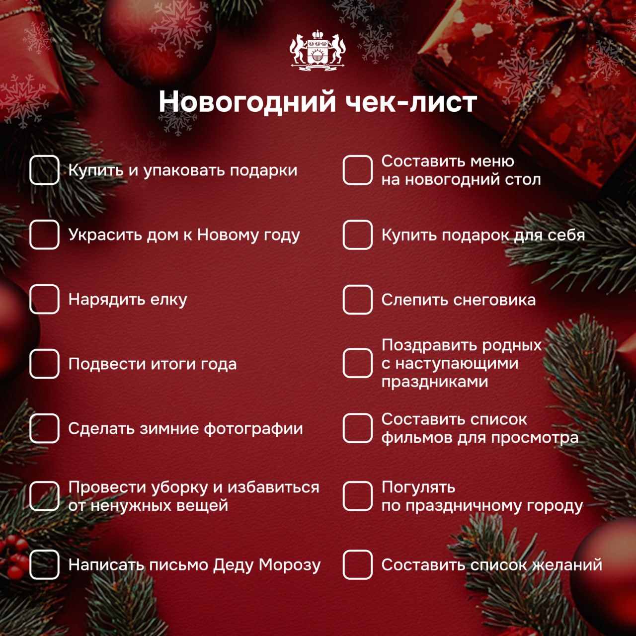 Скачивайте новогодний чек-лист и распечатывайте его. Файл вы найдете в комментариях под этим постом.