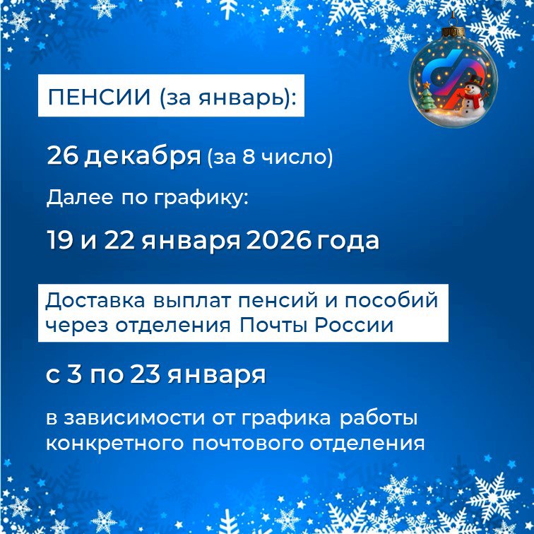 26 декабря — для получателей, у которых дата выплаты — 8 число;
