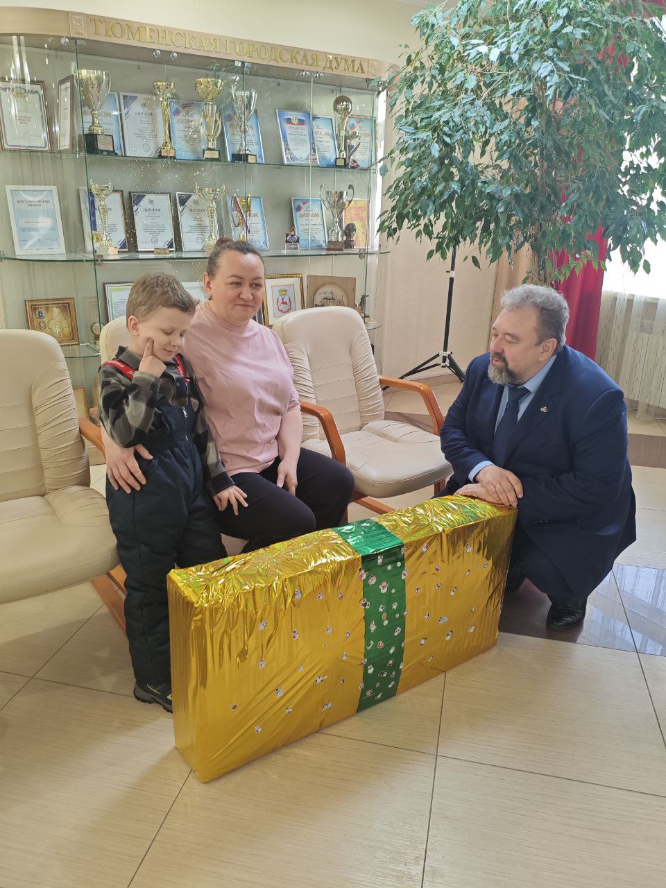 Дмитрий Иванов, директор городского департамента земельных отношений и градостроительства, принял участие в акции «Ёлка желаний», вручив заветную коробку, которая выше своего хозяина, пятилетнему Сергею.