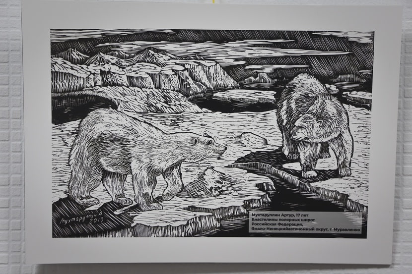 На картинах — белые медведи, символ хрупкости северной природы и нашей ответственности за её сохранение. Юные художники через рисунки говорят о том, что редким животным нужна защита, а каждый человек может внести свой вклад в бережное отношение к окружающему миру.
