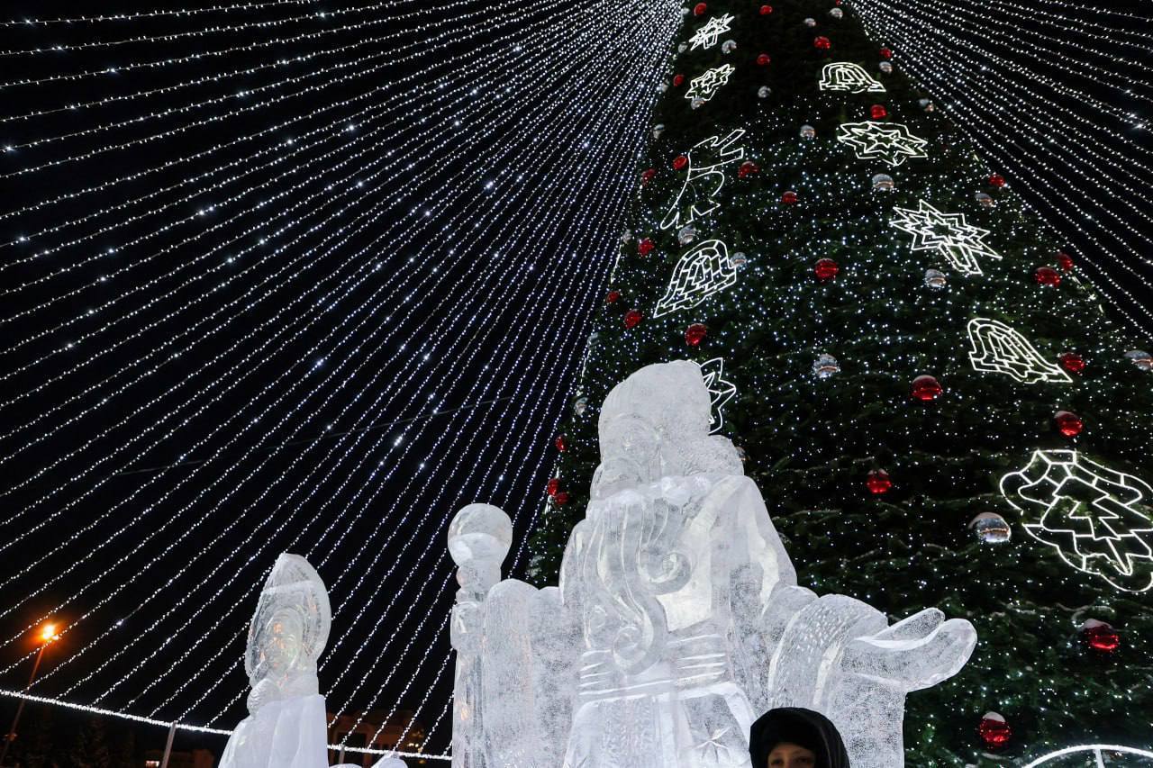 Торжественное открытие елки состоялось сегодня, 27 декабря, на Площади 400-летия. Праздник начался с появления сказочных героев : снежная Королева, Чебурашка, Пряничный Человечек, зайцы, Кощей Бессмертный, Змей Горыныч, Дымковские игрушки и Гжельская роспись, а также любимая всеми Баба-яга.