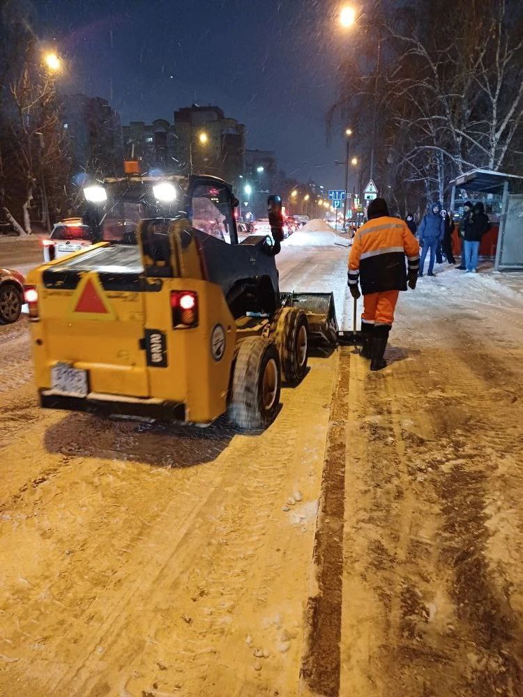 С момента начала снегопада техника непрерывно курсировала по маршрутам, выполняя патрульную очистку и противогололедную обработку (отсев мелкой фракции). Подрядчики сконцентрировались на расчистке основных магистралей, остановок общественного транспорта и тротуаров.