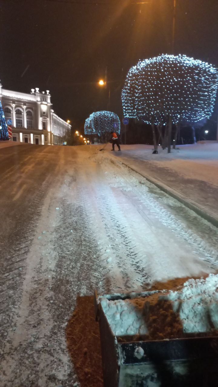 В ночь на дорогах города была задействована вся необходимая техника для очистки и обработки улично-дорожной сети.