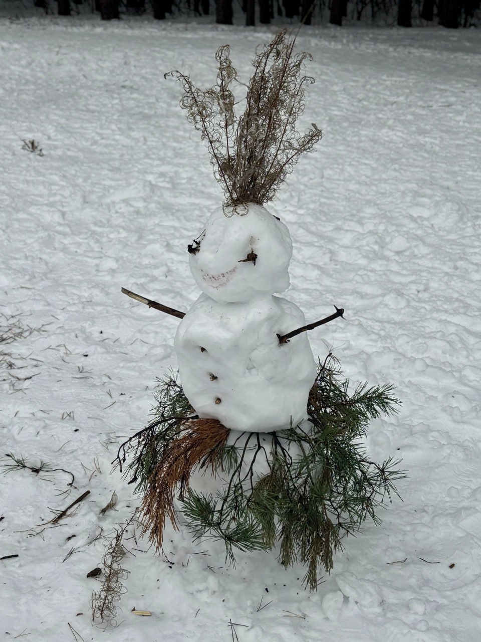 Тип первый – с длинными волосами, снеговики-панки, с укладкой из еловых веток, даже снеговик с ресничками