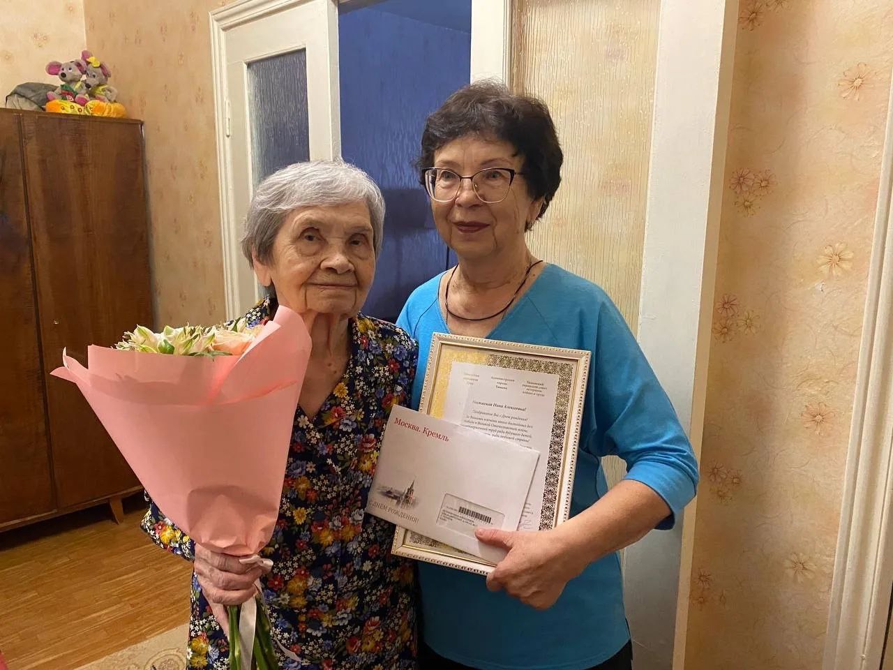 В день рождения с тёплыми поздравлениями Нину Алексеевну посетила Ольга Заровнятных, начальник управления по организационной работе управы Восточного административного округа.