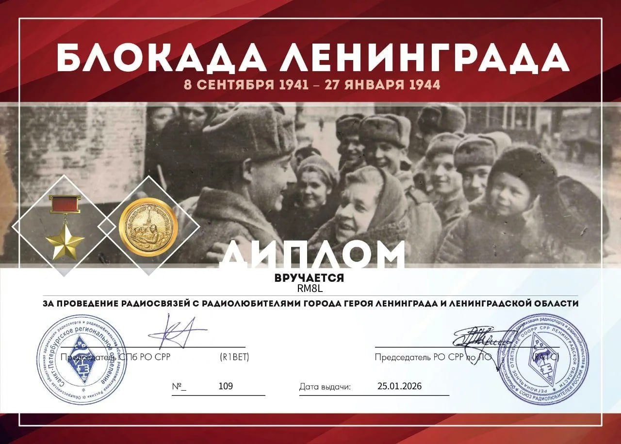 Операторы радиостанции ДМЦ «Алый парус» (педагог Гаврин Д.В.) выполнили условия и получили диплом за проведение радиосвязей с радиолюбителями города героя Ленинграда и Ленинградской области.