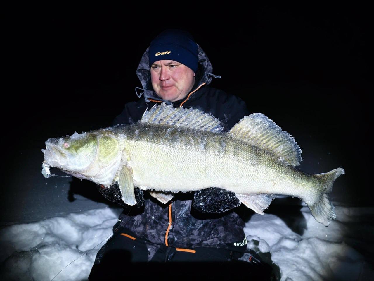 «Мы рыбачили в Вагайском районе. На второй день нам попался вот этот красавец! Большой судак — серьезный трофей для зимнего периода. Потому что зимой в большинстве случаев такая рыба не пролезет в лунку и менее активна, чем летом. Для нас это запоминающаяся поимка, потому что таких рыб очень тяжело уговорить на поклевку. Они уже умные, повидавшие жизнь. Да и если даже судак и клюнет, то из-за его бронированной пасти его очень тяжело просечь крючком, но у нас всё получилось!»