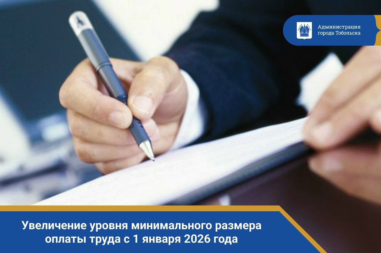 Рабочая группа областной межведомственной комиссии по противодействию нелегальной занятости в Тюменской области в муниципальном образовании город Тобольск напоминает работодателям города Тобольска об увеличении уровня минимального размера оплаты труда с 1 января 2026 года.