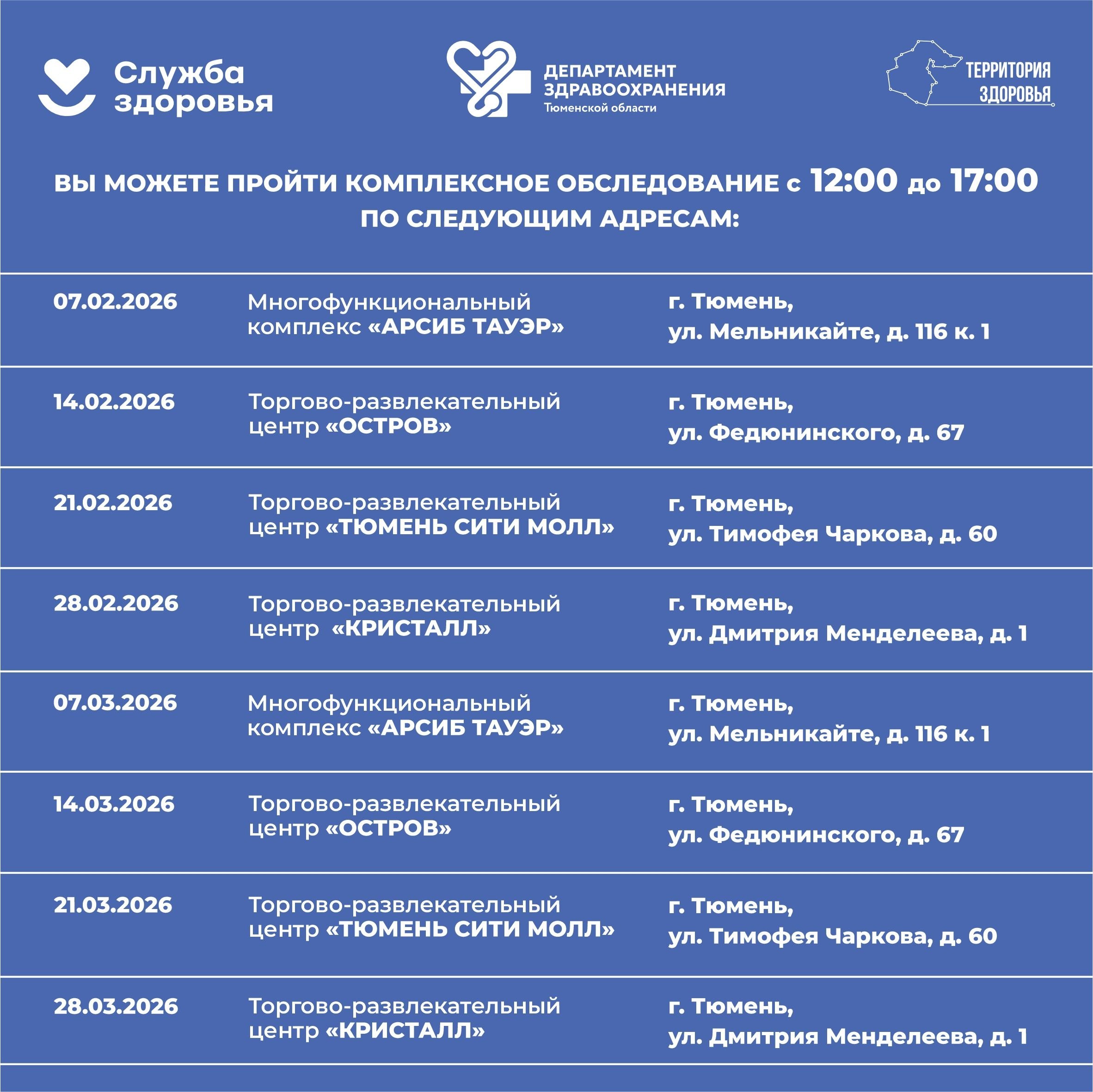 Кроме того, комплексное обследование получится пройти и в другие дни. Смотрите расписание на изображении.