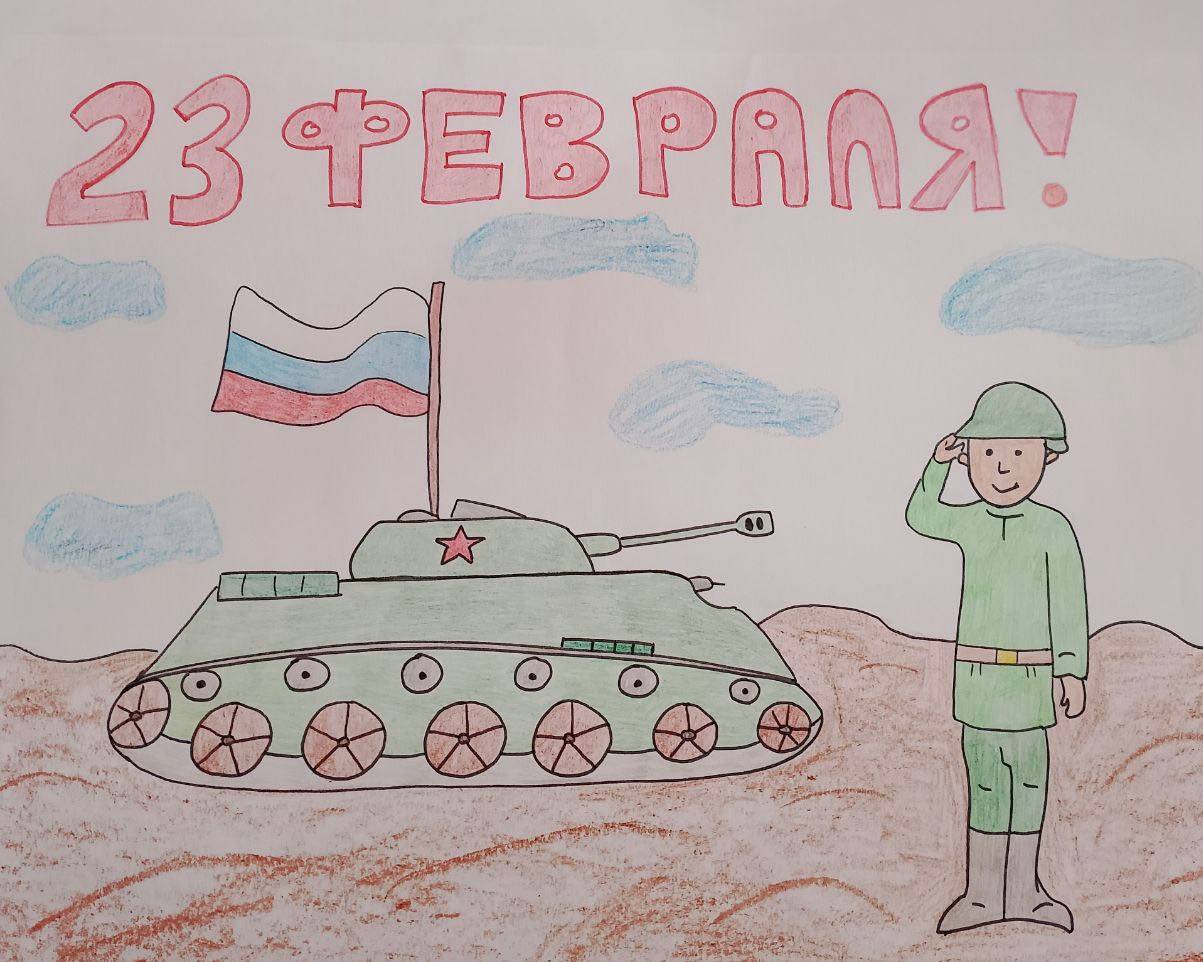 А в центре – рисунок маленького Димы Токарева. Мальчик из тобольского детского сада №40 нарисовал солдата, танк и российский флаг. Для него защитник – это герой. Пусть так и будет всегда: детские рисунки мирными, а наши герои – живыми и здоровыми.
