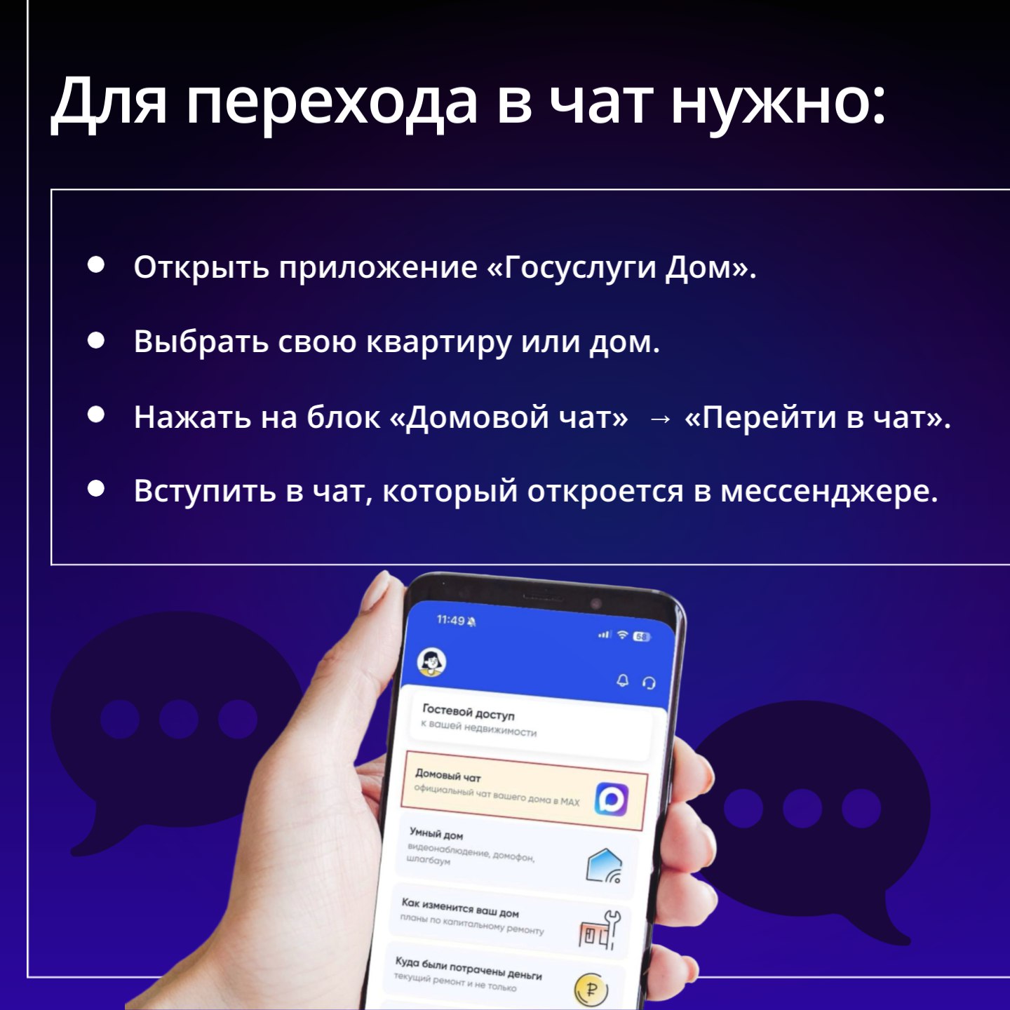 Листайте карточки, чтобы узнать, как вступить в чат за пару кликов