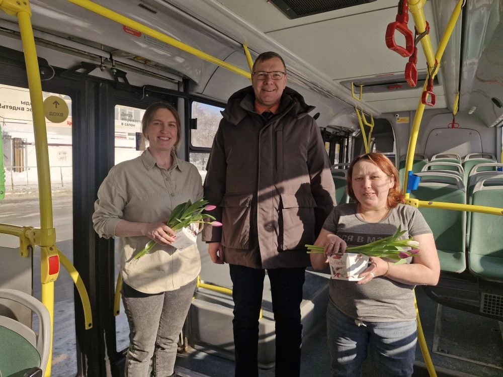 Представители городского департамента дорожной инфраструктуры и транспорта с особым теплом поздравили сотрудниц информационно справочной службы МКУ «Тюменьгортранс» и линейного персонала маршрутов регулярных перевозок.