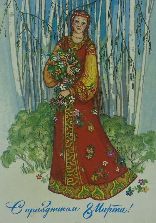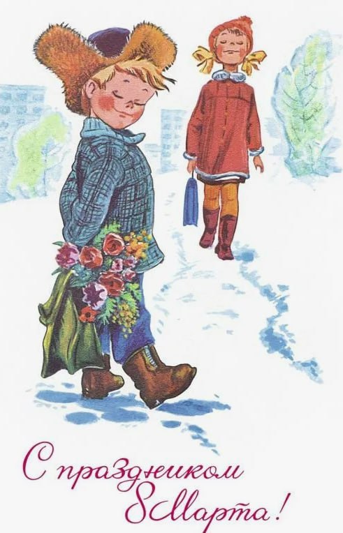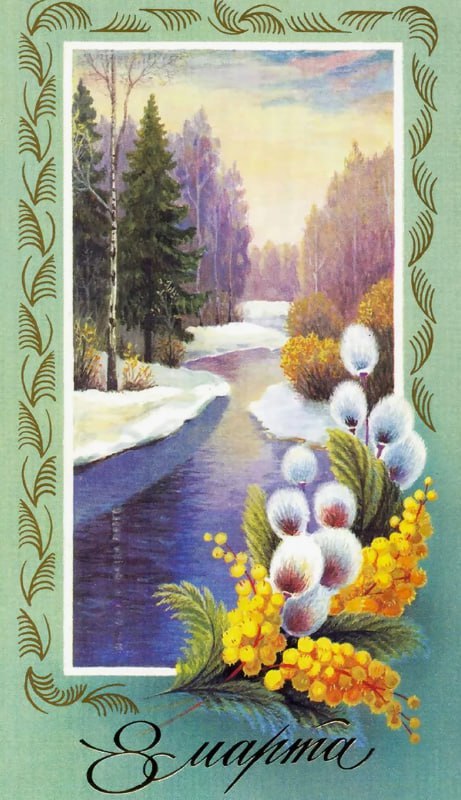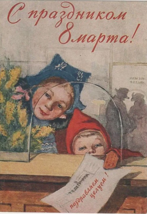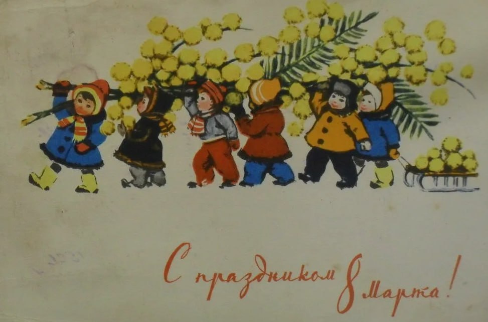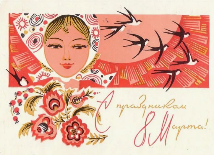 Перешлите пост или понравившуюся открытку маме, сестре, подруге: советское искусство умело сделать праздник тёплым.