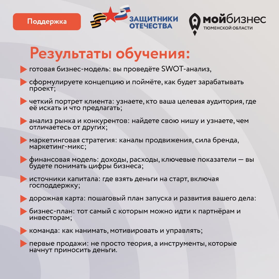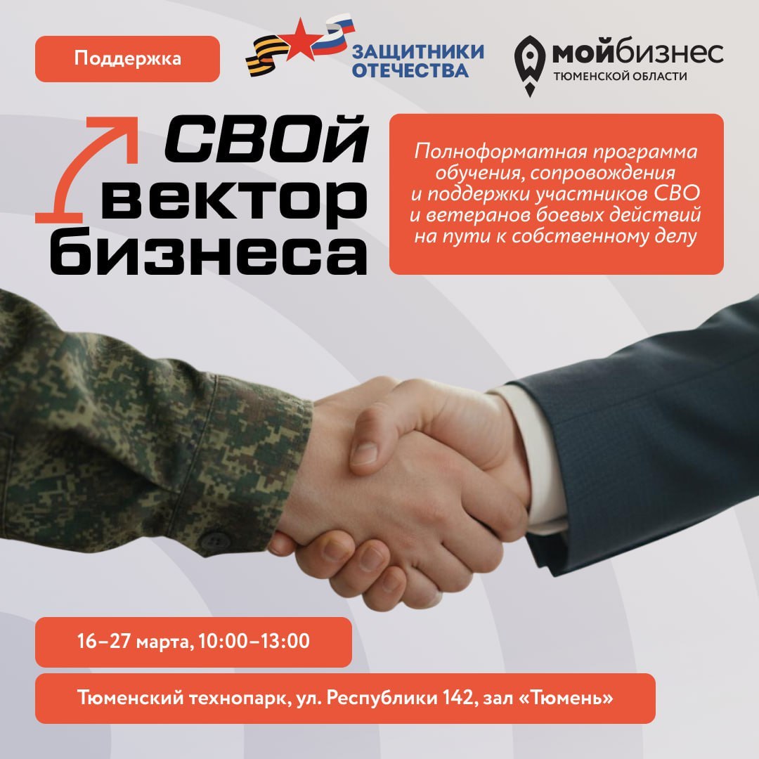 Мероприятие проводится Центром «Мой бизнес» совместно с региональным филиалом Фонда «Защитники Отечества» в рамках нацпроекта «Эффективная и конкурентная экономика».