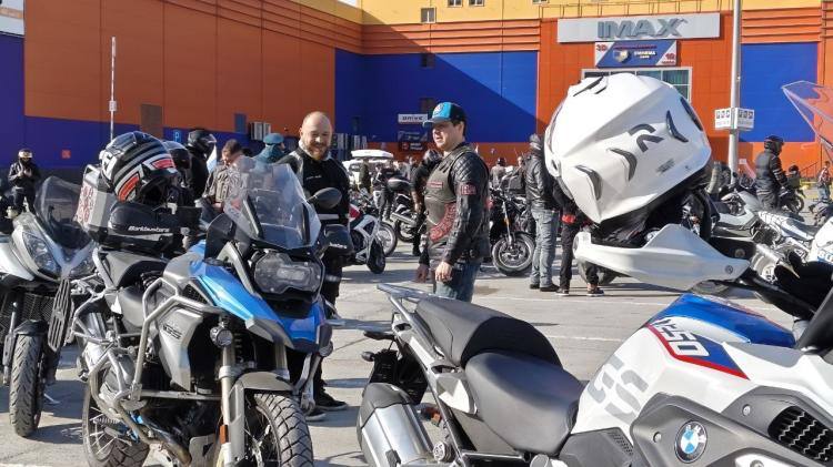 Любителям двухколесного транспорта предложили выстроиться в цифру "377" и сделать фотографию на память.